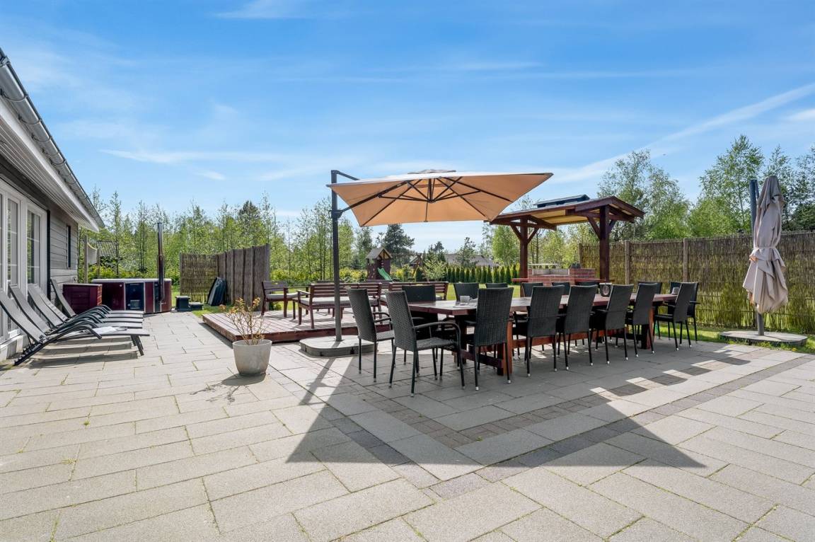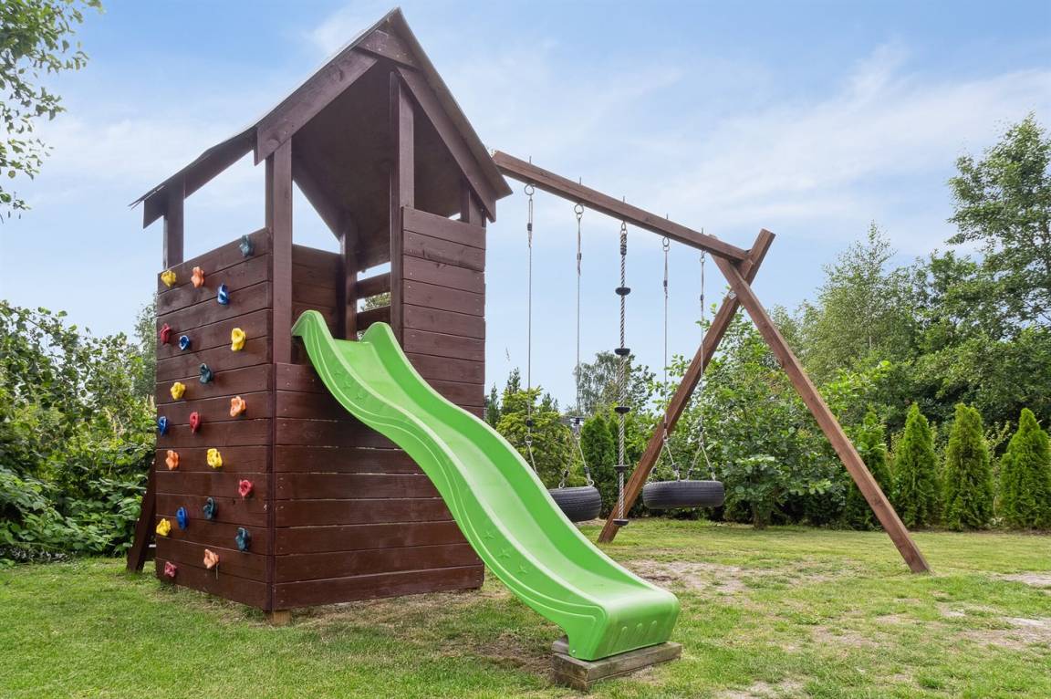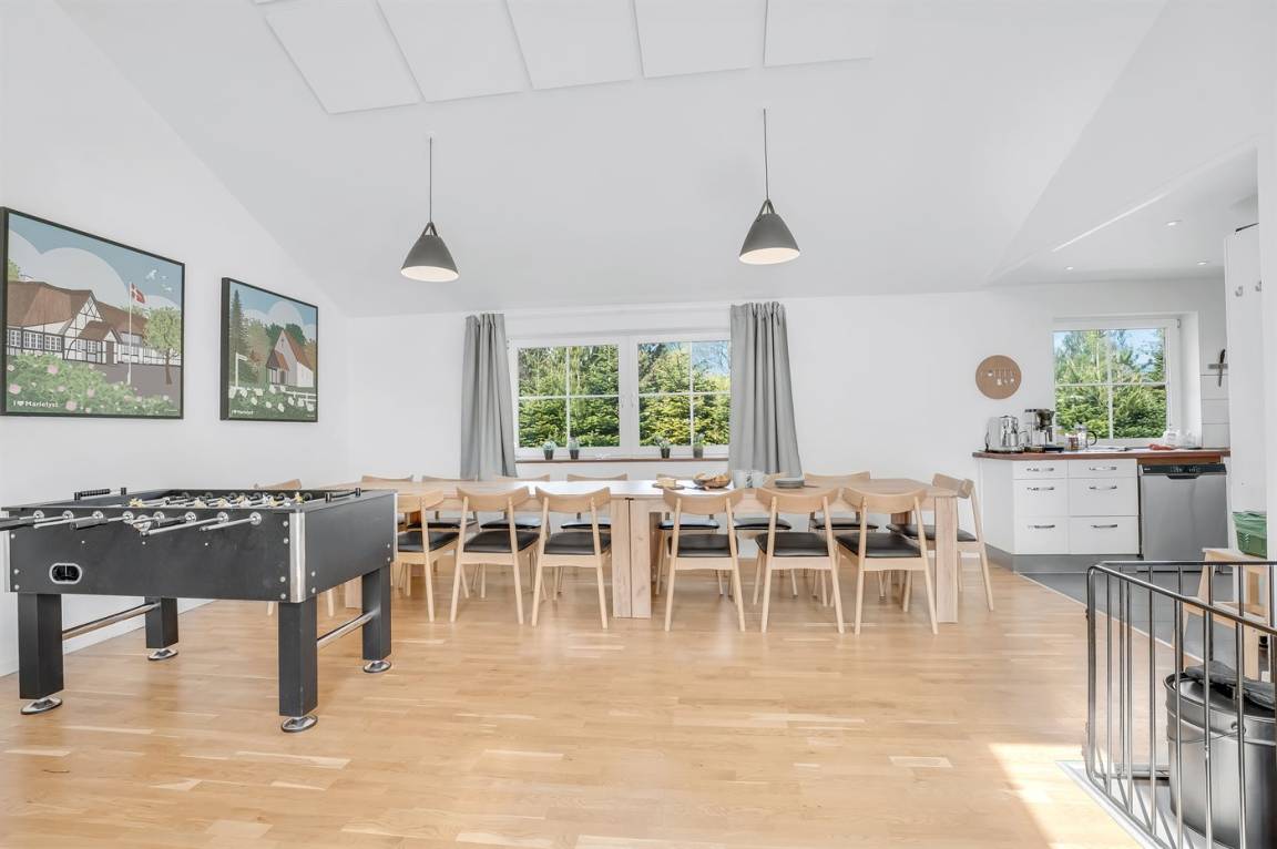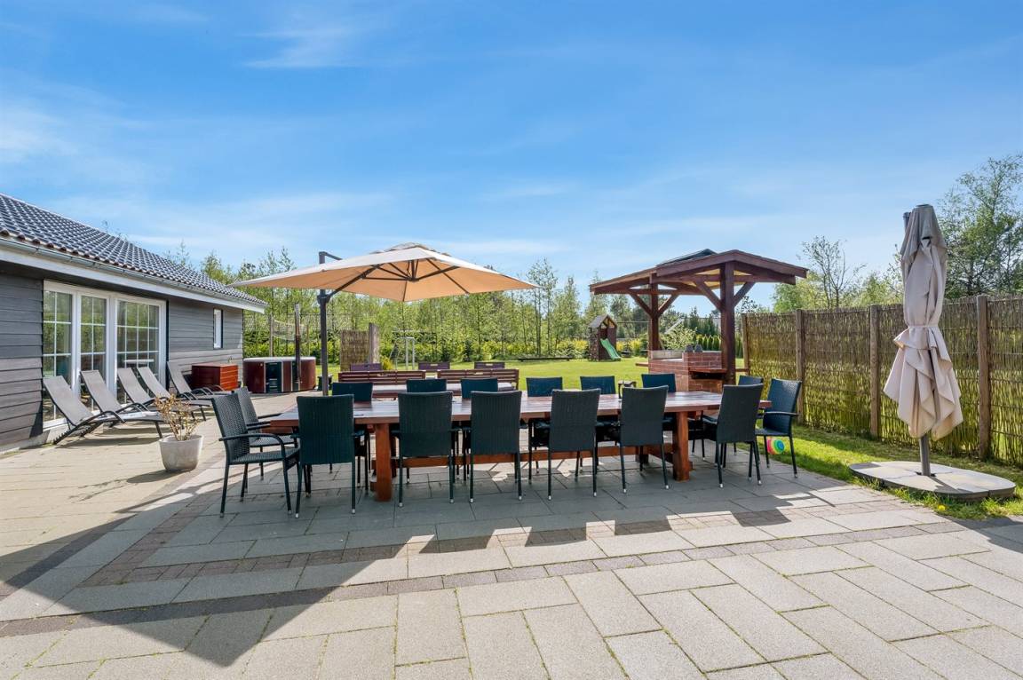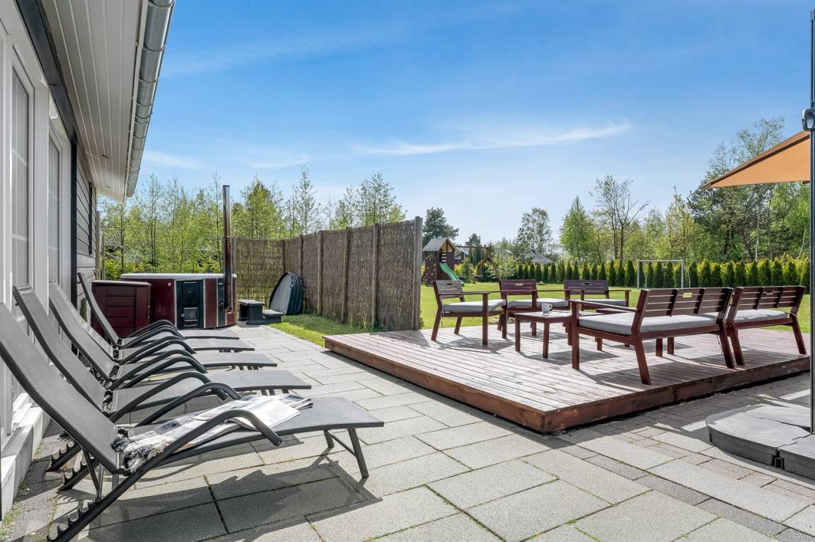 Das Ferienhaus eignet sich für 16 Personen. 5 der Schlafplätze eignen sich jedoch nur für größere Kinder (4-11 Jahre). Die Ferienunterkunft hat eine Wohnfläche von 280 m² und wurde 2019 gebaut. Haustiere dürfen nicht mitgebracht werden. Die Ferienunterkunft ist mit zwei energiefreundliche Luft-Luft-Wärmepumpen ausgestattet. Es gibt Solarwärme. Fußbodenheizung in allen Räumen. Die Ferienunterkunft ist mit Waschmaschine ausgestattet. Wäschetrockner. Tiefkühlmöglichkeit mit 100 Liter Nutzinhalt. Es gibt außerdem einen Kaminofen. Für die jüngsten Feriengäste ist 1 Kinderhochstuhl vorhanden.