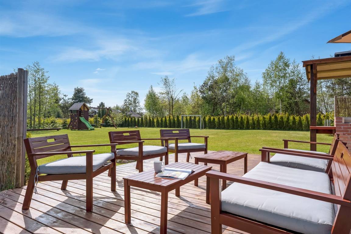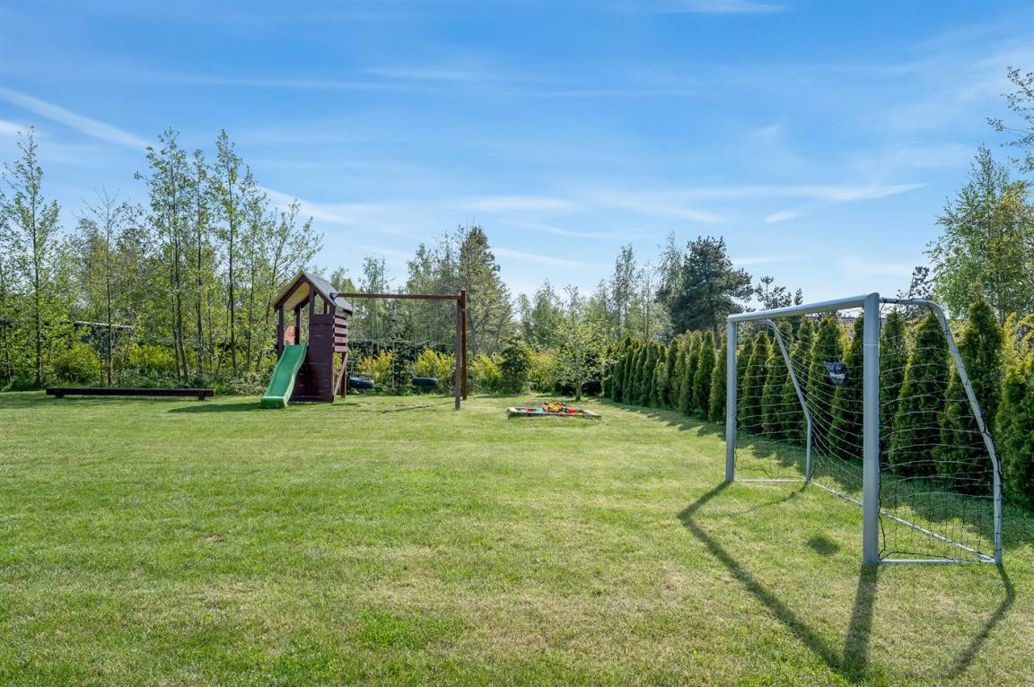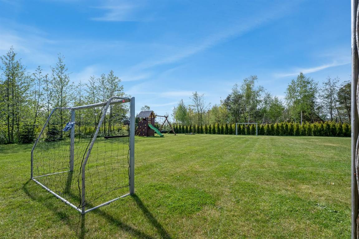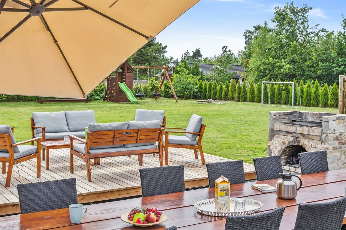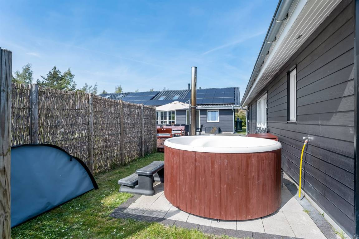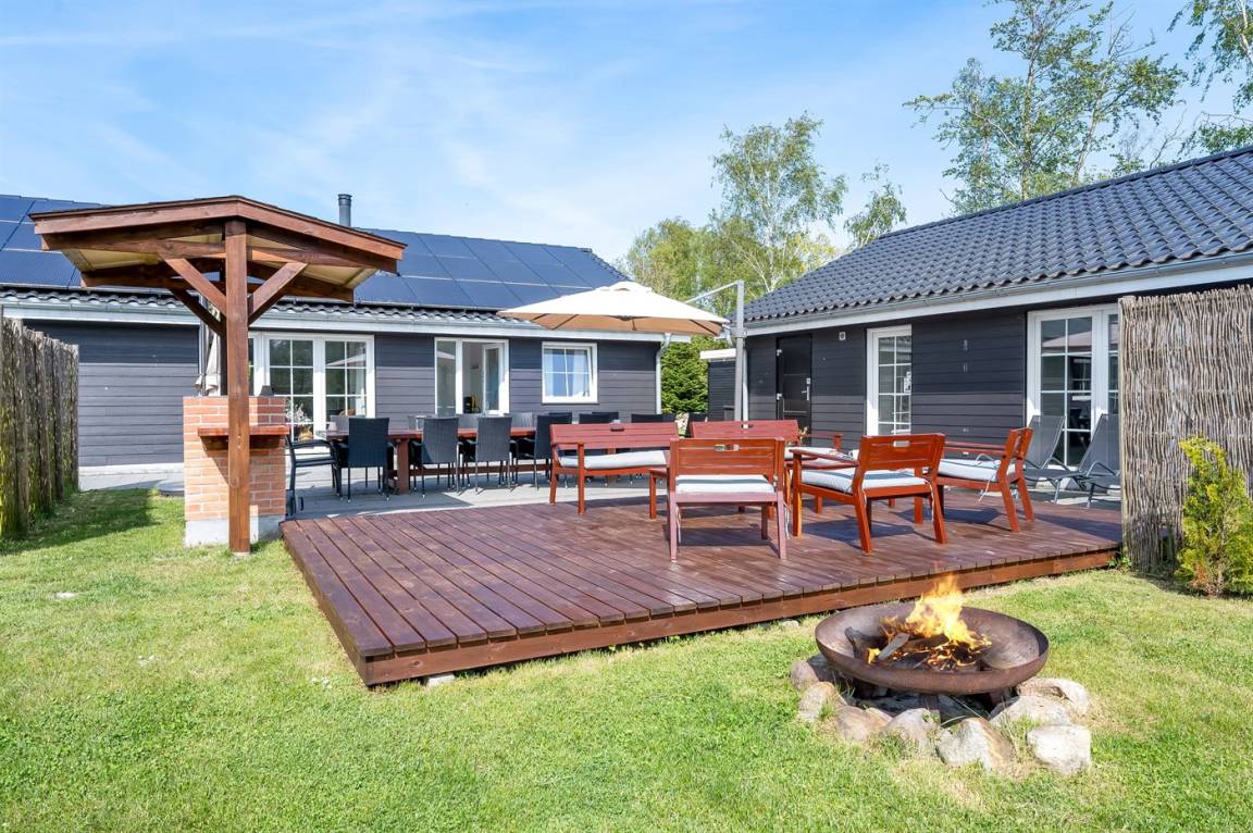 DraußenDie Ferienunterkunft liegt auf einem 2099 m² großen Naturgrundstück. Die Entfernung zum Meer beträgt 900 m. Die nächste Einkaufsmöglichkeit liegt 2000 m entfernt. Es steht ein offenes Terrassenareal zur Verfügung. Schaukel. Sandkasten. Fußballtor.Lagerfeuerstelle. Es steht ein überdachter gemauerter Grill zur Verfügung. Parkplatz auf dem Grundstück.