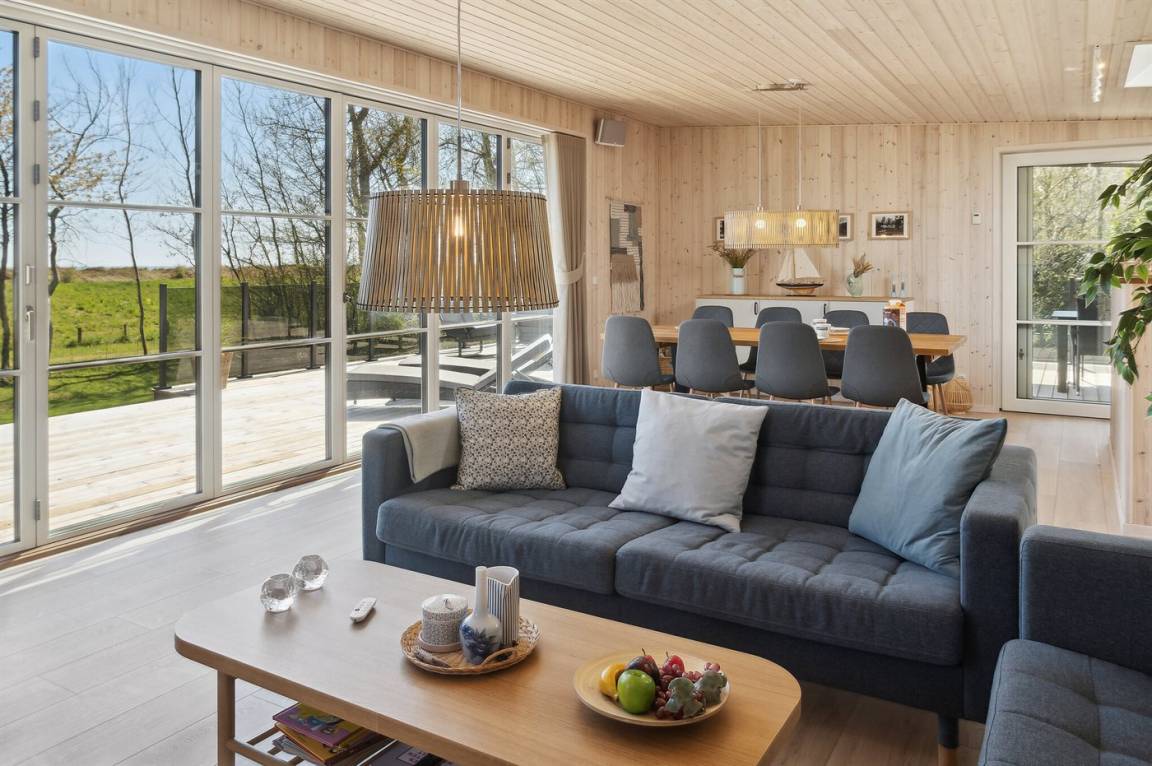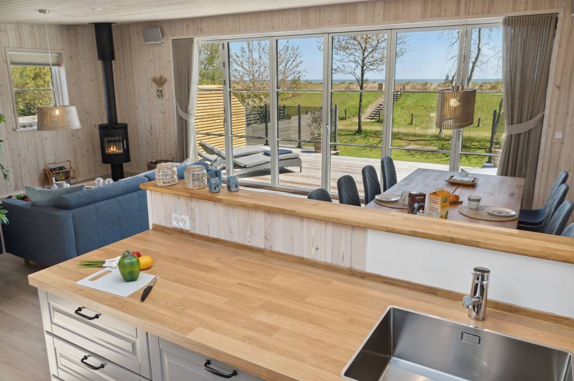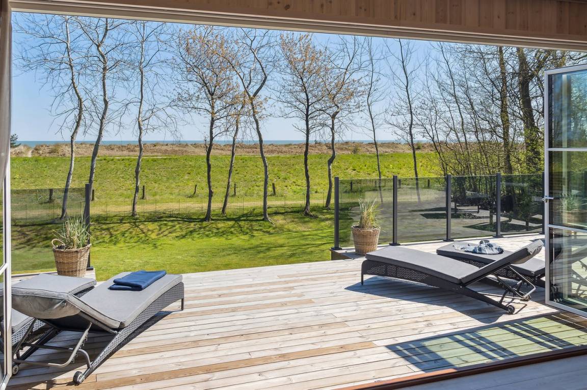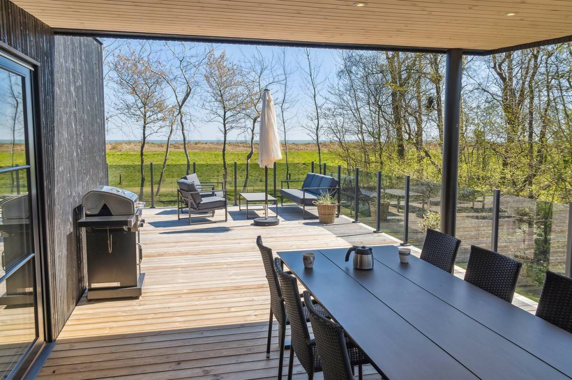 Ein ganz neues Ferienhaus in erster Reihe, das mit einem fantastischen Ausblick aufs Wasser aufwartet. Durch den Schnitt der Räume gelangt man vom Wohnzimmer direkt auf eine große Terrasse. Die Wohnzimmerfenster lassen sich zu den Seiten hin komplett öffnen, wodurch ein großer Bereich entsteht, von dem Sie die fantastische Aussicht genießen können.
