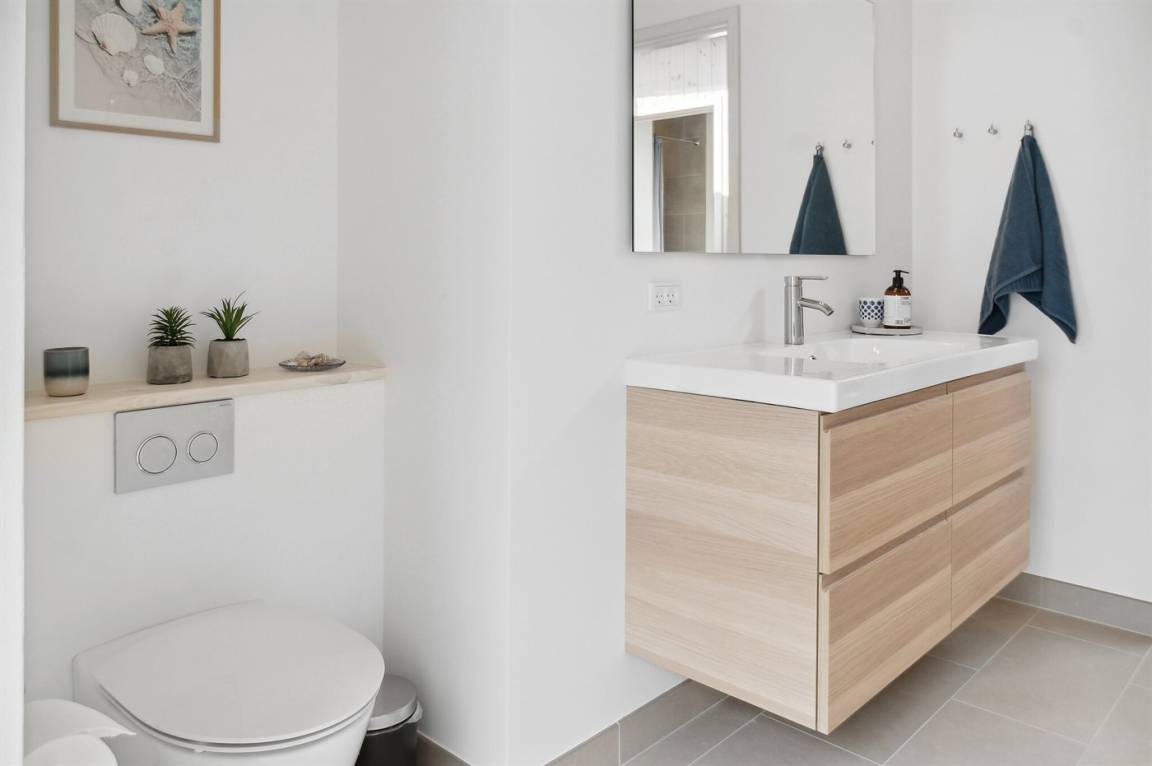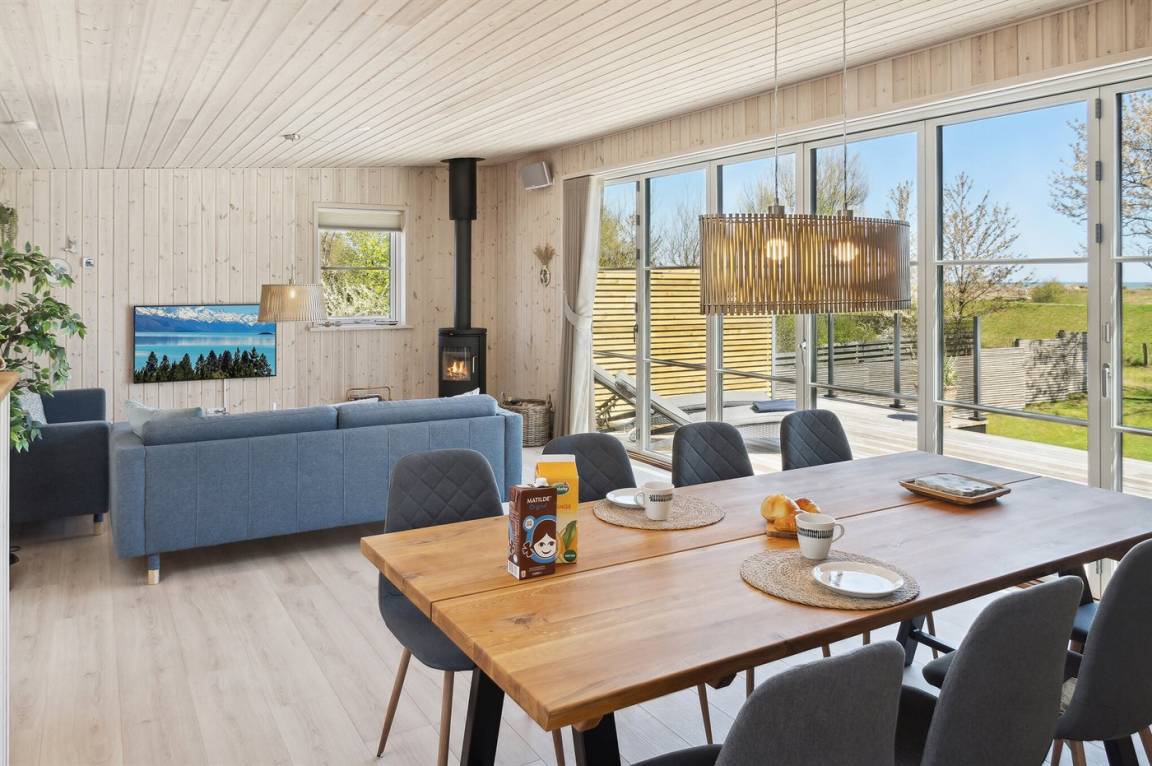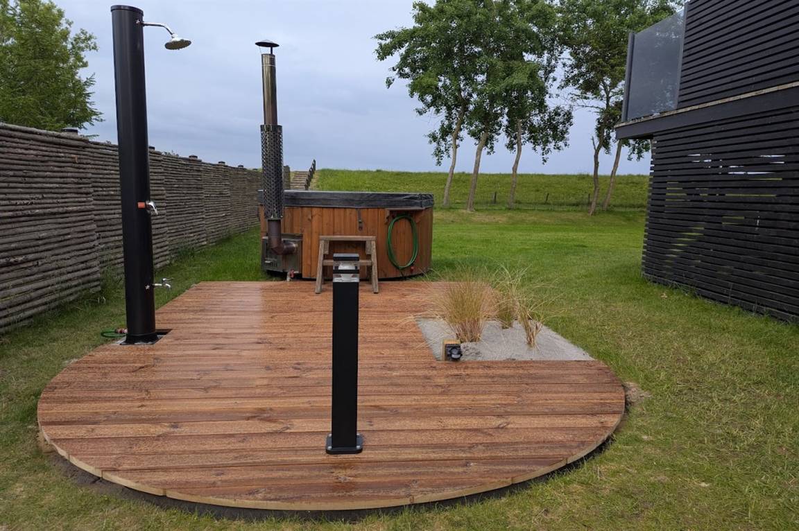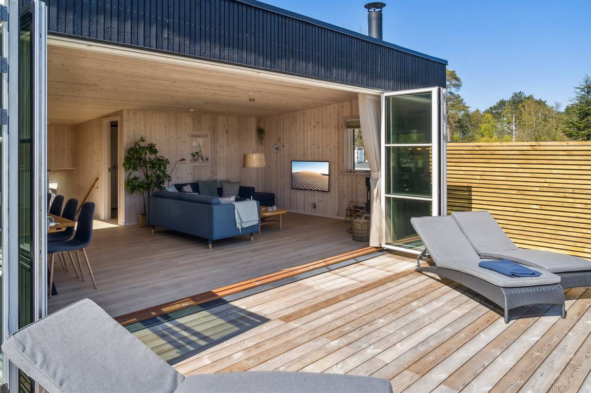 Ein ganz neues Ferienhaus in erster Reihe, das mit einem fantastischen Ausblick aufs Wasser aufwartet. Durch den Schnitt der Räume gelangt man vom Wohnzimmer direkt auf eine große Terrasse. Die Wohnzimmerfenster lassen sich zu den Seiten hin komplett öffnen, wodurch ein großer Bereich entsteht, von dem Sie die fantastische Aussicht genießen können.