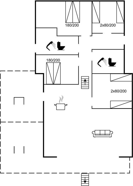 SchlafverhältnisseDie Schlafplätze verteilen sich auf 4 Schlafräume. 4 Schlafplätze in Doppelbetten. 4 Schlafplätze in Einzelbetten. Ferner steht ein Kinderbett zur Verfügung.