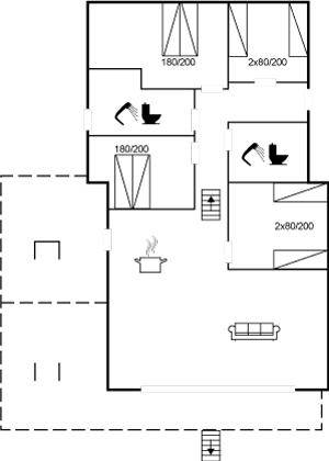 Das Haus ist 1½-stöckig, was es besonders interessant macht. Dieses Haus lädt in jeder Beziehung zum Zusammensein und Entspannen ein.
