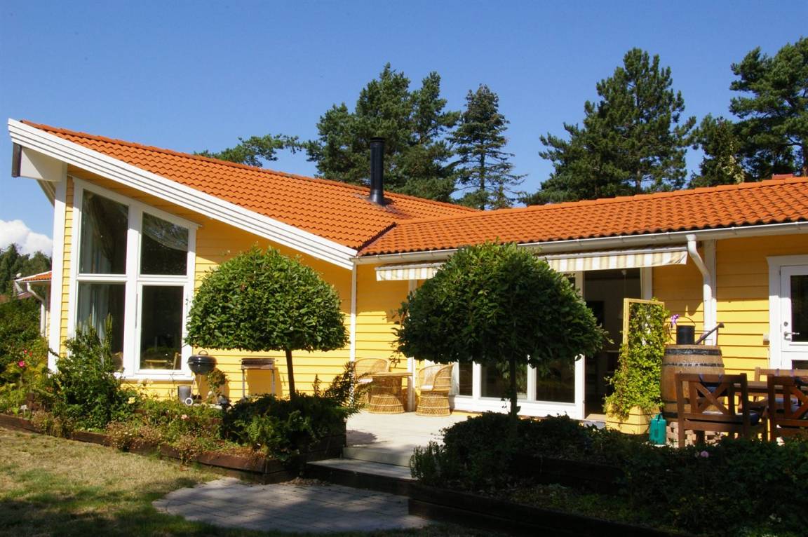 Ein großes Ferienhaus, nur 150 m von schönem Sandstrand entfernt. Das Haus liegt in einer Sackgasse, die direkt zum Strand führt. Großes, ungestörtes und kupiertes Grundstück. Das Haus ist laufend renoviert worden und präsentiert sich hell und freundlich, mit einer offener Küche und Panoramafenstern zum Garten hin. Vom Wohnzimmer gelangen Sie auf die große Terrasse.