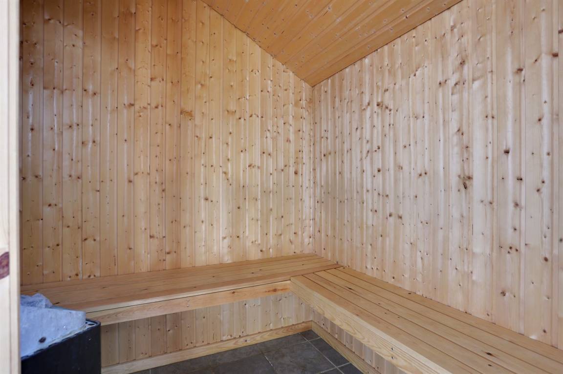 Innen sind die Wände mit Holz verkleidet. Holzböden. 2 schöne Badezimmer, beide mit beheizbaren Klinkerböden und Duschnische. In dem einen ferner 6-Pers.-Whirlpool sowie Zutritt zur Sauna. Schicke und gut ausgestattete Küche mit u. a. Geschirrspüler, Mikrowelle, Tiefkühlgerät, Umluftofen und Herd mit Ceran-Feld. Das moderne Wohnzimmer, mit großer Fensterfront, tritt hell und freundlich hervor. Hier finden Sie Kaminofen, DVD-Spieler, TV, Stereoanlage mit CD-Spieler und Playstation2.