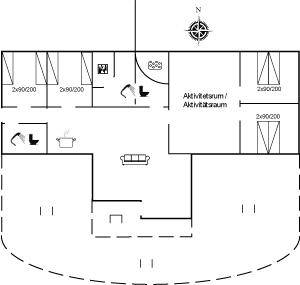 „The vacation at the holiday home: Sommerhuset var ikke tilstrækkeligt rengjort ved ankomst. I har en meget lang liste over hvad der skal rengøres efter brug, og flere ting var ikke gjort. Flere fingeraftryk på vinduer, støv og spindelvæv overalt, gammelt snavs flere steder, døde fluer, pletter på overflader, som nemt kunne tørres af og myrer overalt. Derudover var inventaret meget nedslidt og skrabet. Sofaen bla var total nedslidt, støvsugeren holdt sammen med gaffatape og kosten til udendørs var i stykker - kun halv længde på skaftet. Det er egentlig utroligt, at man har et sommerhus til 8-10 personer, og så kun sofaplads til 4 personer. Og det er en skam at der i et sommerhus af den størrelse slet ikke er nogen form for hygge og personlighed. Det er helt klart det ringeste sommerhus på alle måder, vi har opholdt os i. Til den pris, kan man som lejer godt forvente mere. Aktivitetsrummet var fint nok.“