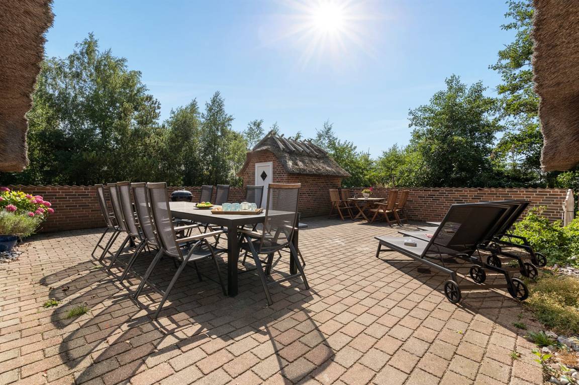 Die Ferienunterkunft liegt auf einem 2247 m² großen Naturgrundstück. Bis zum Meer sind es 1300 m. Das nächste Geschäft ist 1000 m entfernt. Ein Golfplatz befindet sich in 4800 m Entfernung. Zur Ferienunterkunft gehört eine 65 m² große Terrasse. Es ist ein Geräteraum vorhanden. Schaukel. Fußballtor. Parkmöglichkeit an der Ferienunterkunft. Es ist ein Ladegerät für Elektroautos installiert (11 kW Ladeleistung).