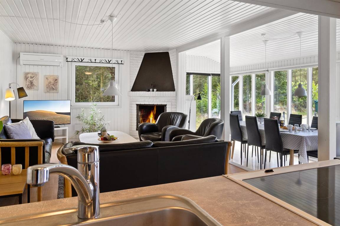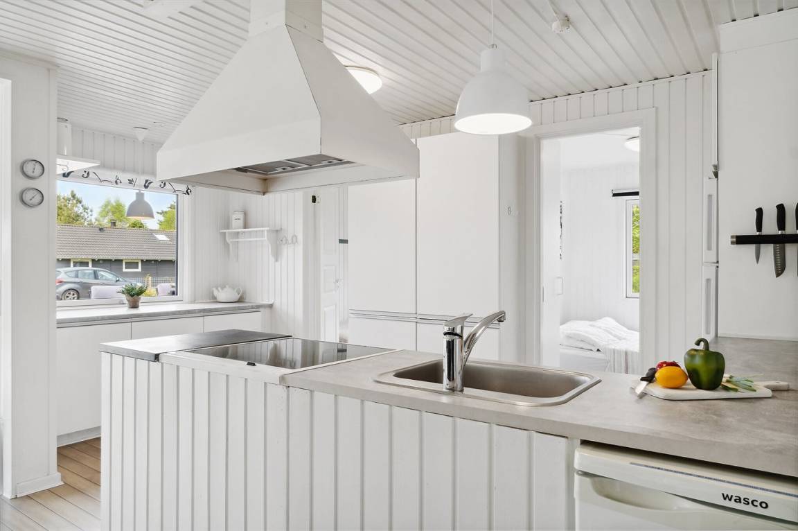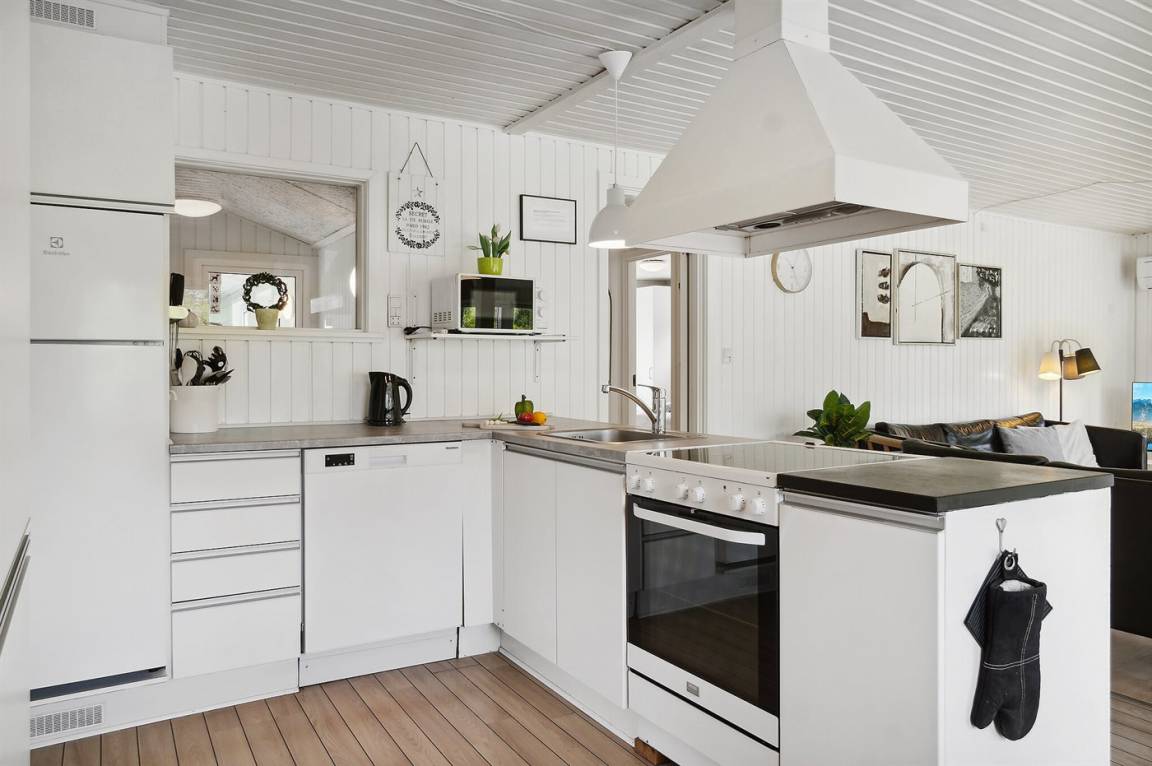Dieses authentische Ferienhaus bietet Ihnen eine gut ausgestattete Küche, die offen an den Aufenthaltsbereich angrenzt. Der Essbereich wartet mit Panoramafenstern auf, die für viel Lichteinfall sorgen und den Blick in den grünen Vorgarten freigeben. Es gibt 4 schöne Schlafzimmer, die jeweils an den Enden des Hauses liegen. Alle Zimmer verfügen über guten Stauraum.