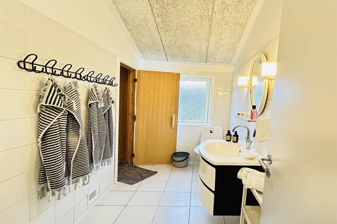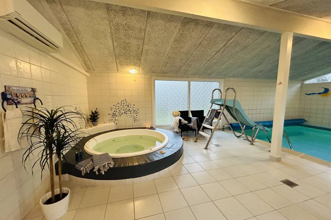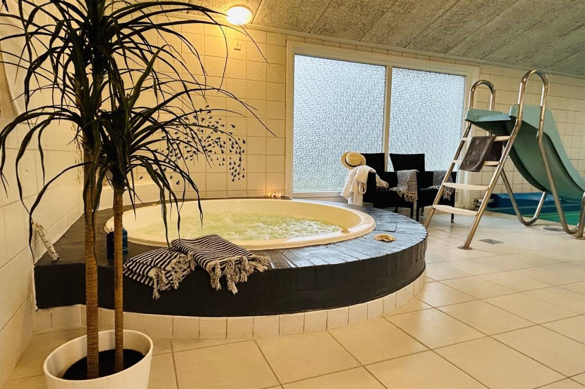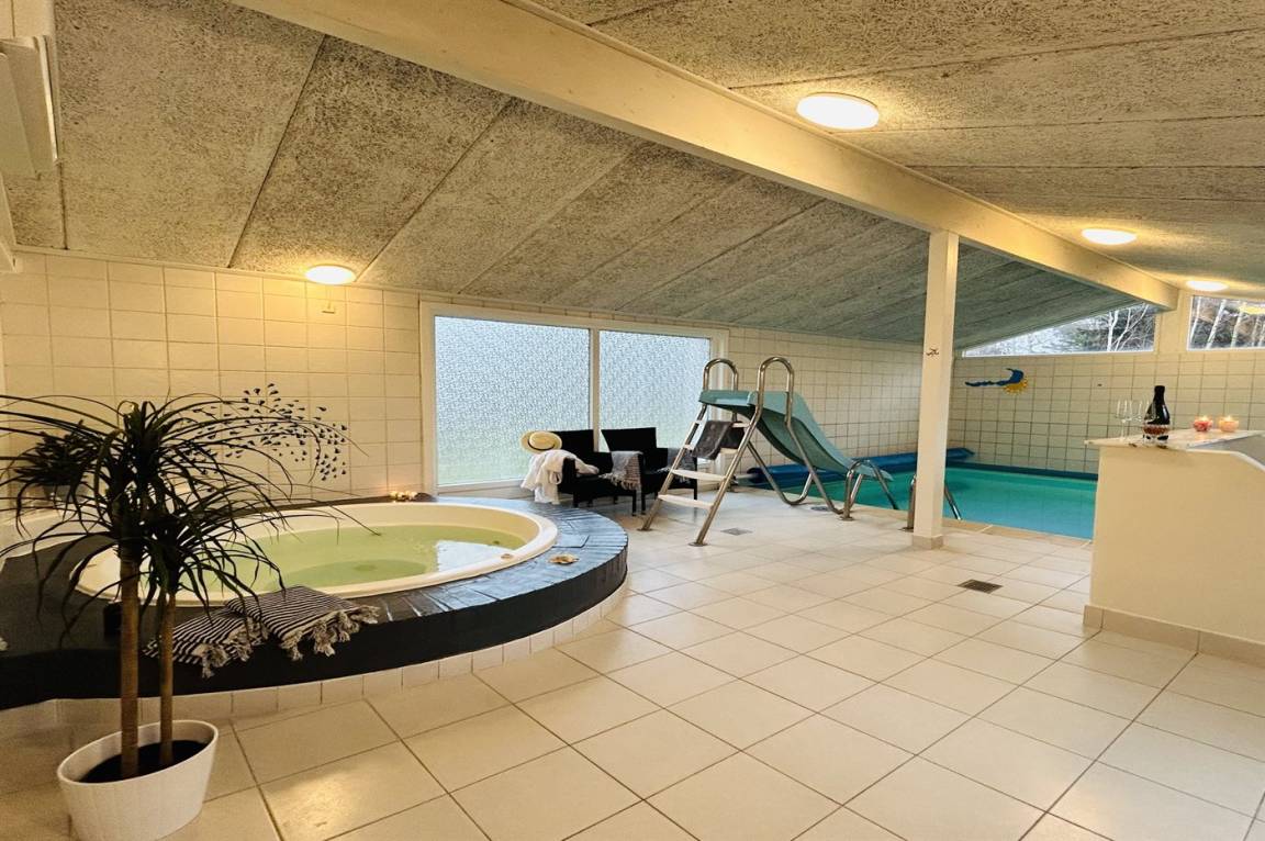 Der Mittelpunkt des Hauses ist der große separate Pool- und Wellnessbereich. Hier gibt es einen herrlichen, warmen Swimmingpool mit guter Tiefe zum Toben. Auch ein großer, geräumiger Standwasser-Whirlpool steht zur Verfügung, in den Sie nach Ihrer Runde im Pool gleiten können. Zum Abschluss bietet sich ein schöner Saunagang an.