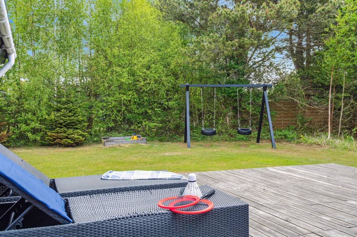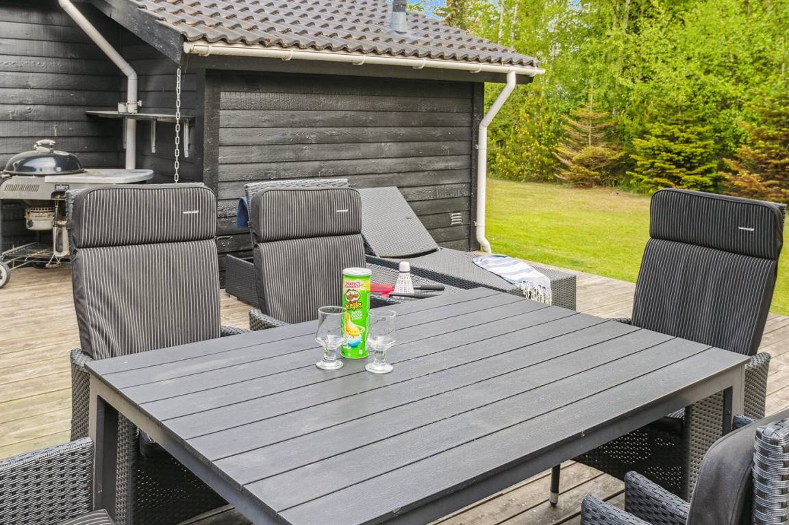 Draußen wartet die herrliche Holzterrasse auf Sie, die Sie gern barfuß betreten können. Vor dem Haus befindet sich ein kleinerer, separater Bereich der Terrasse, der mit einem Tor geschlossen werden kann. Auf der Rückseite des Hauses, zum Garten hin, erwartet Sie ein schöner Terrassenbereich mit guten Gartenmöbeln. Hier können Sie sich mit einem guten Buch oder einem Glas Wein zurückziehen, während der Grill angezündet wird.