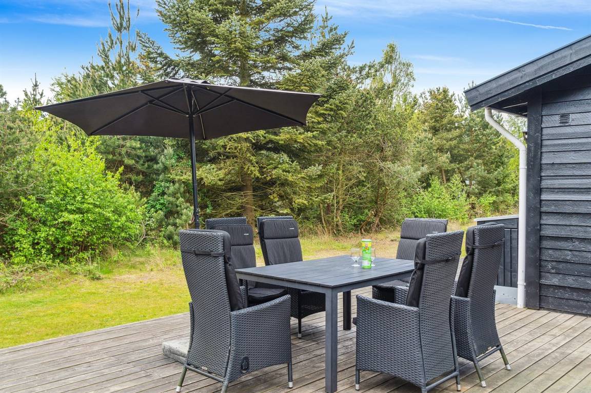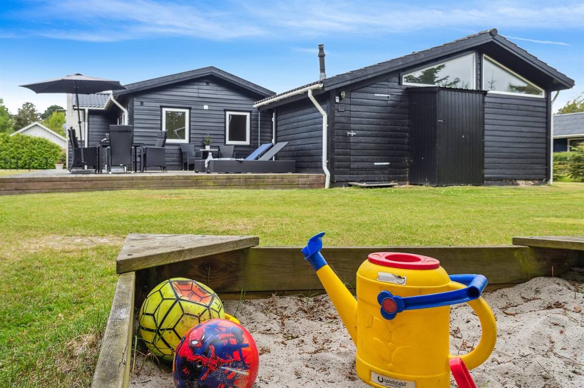 Dieses schöne Ferienhaus mit schwarz gestrichener Holzverkleidung und weißen Fenstern versprüht eine natürliche Ferienhausatmosphäre. Ein Haus, das viele Stammgäste hat, die jedes Jahr wiederkommen.