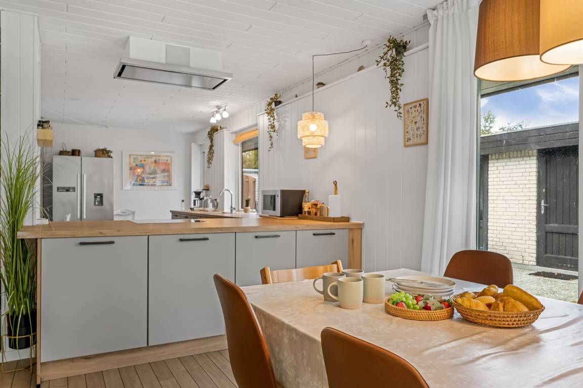 EinrichtungDas Ferienhaus eignet sich für 12 Personen sowie 1 Kleinkind bis zu 3 Jahren. Die Ferienunterkunft hat eine Wohnfläche von 180 m², ist 2-stöckig, und wurde 1975 gebaut. Haustiere dürfen nicht mitgebracht werden. Die Ferienunterkunft ist mit energiefreundlicher Luft-Luft- Wärmepumpe ausgestattet. Fußbodenheizung im Wohnzimmer. Fußbodenheizung in der Diele. Die Ferienunterkunft ist mit Waschmaschine ausgestattet. Wäschetrockner. Tiefkühlmöglichkeit mit 80 Liter Nutzinhalt. Es gibt außerdem einen Kaminofen. Für die jüngsten Feriengäste ist 1 Kinderhochstuhl vorhanden.