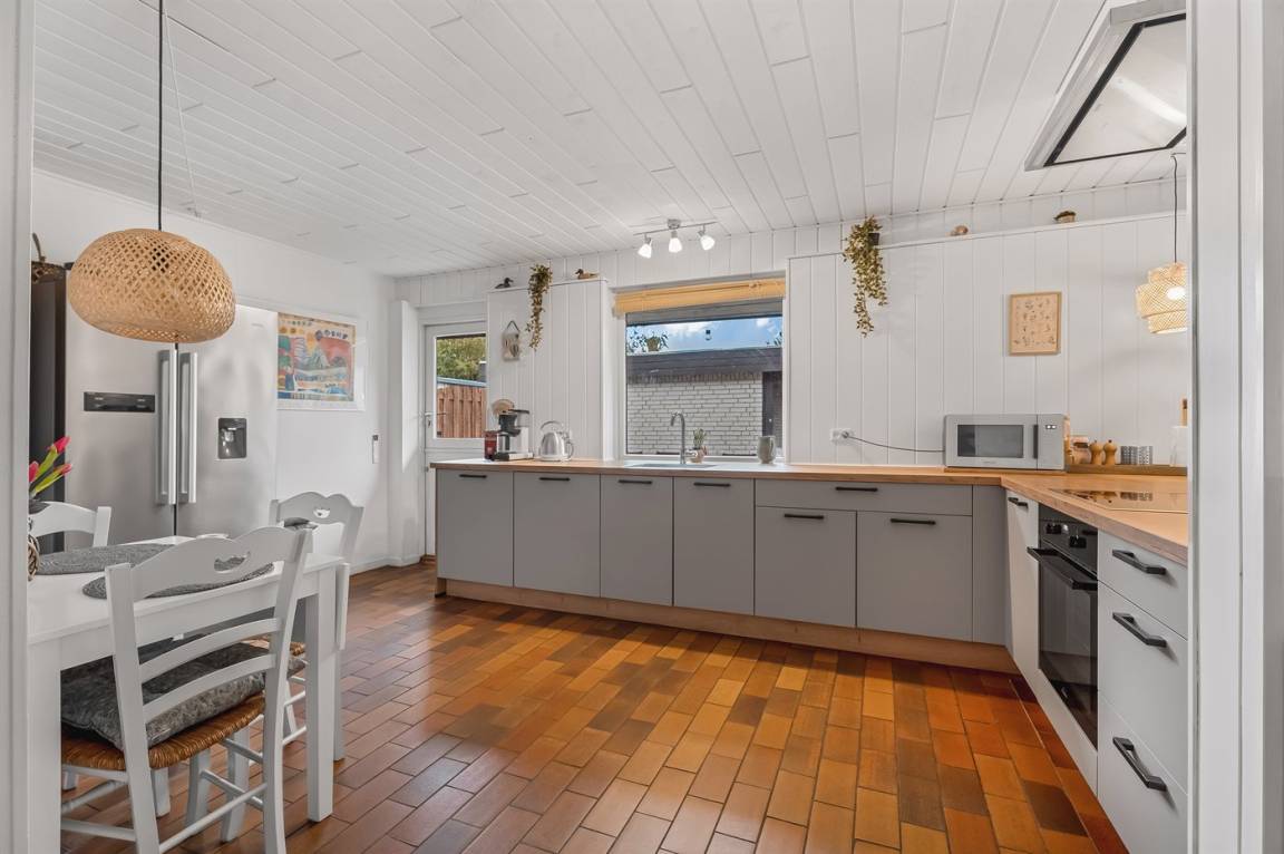 DraußenDie Ferienunterkunft liegt auf einem 1023 m² großen Gartengrundstück. Die Entfernung zum Meer beträgt 500 m. Die nächste Einkaufsmöglichkeit liegt 800 m entfernt. Es steht ein offenes Terrassenareal zur Verfügung. Außerdem gibt es überdachte Terrasse.Balkon im Obergeschoss. Schaukel. Sandkasten. Fußballtor. Es steht ein Grill zur Verfügung. Parkplatz auf dem Grundstück.
