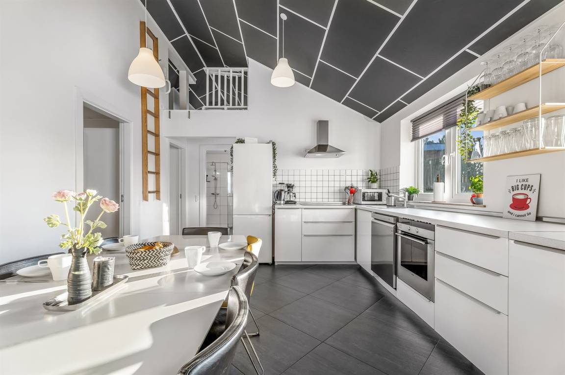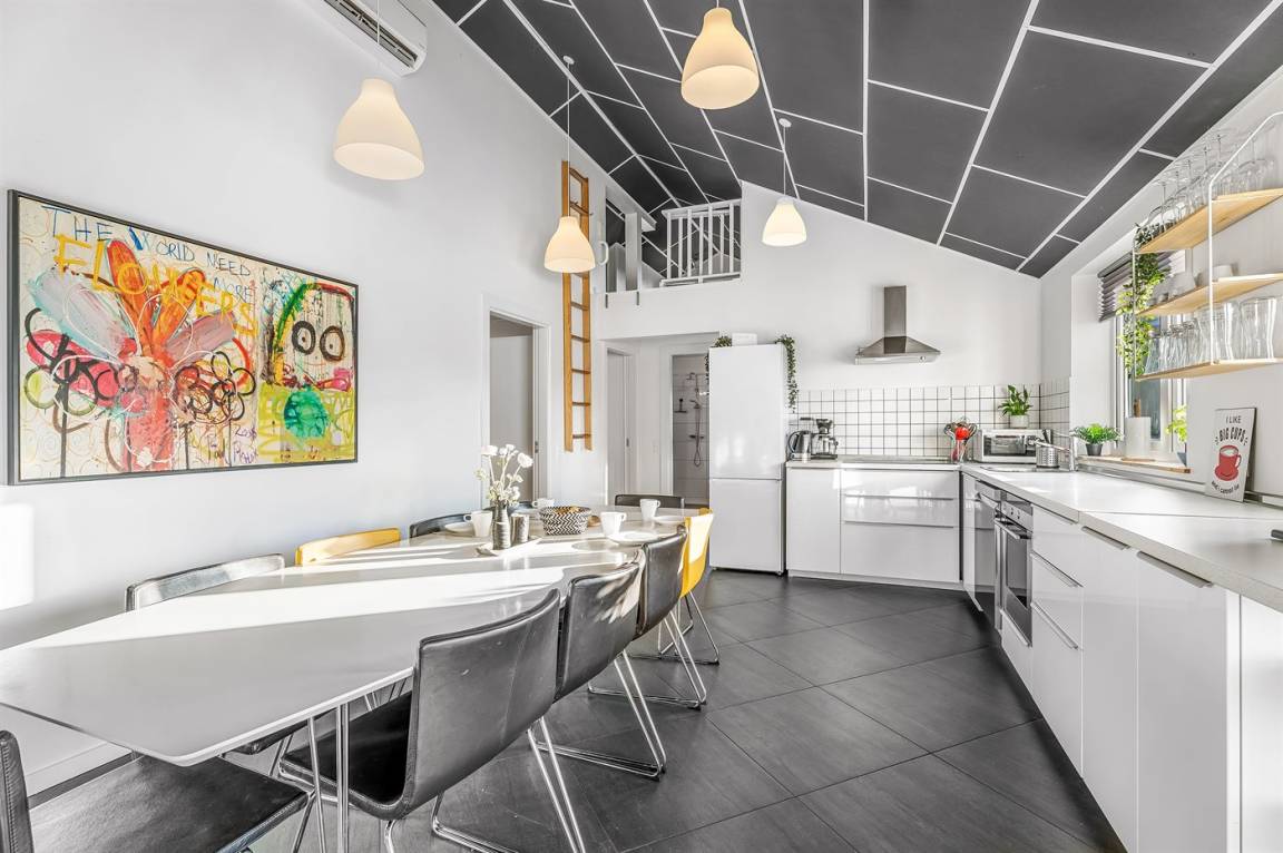 KücheDie Küche ist mit Kühlschrank ausgestattet. Außerdem gibt es 4 Induktions-Kochzonen, Umluftofen, Mikrowelle sowie Geschirrspüler.