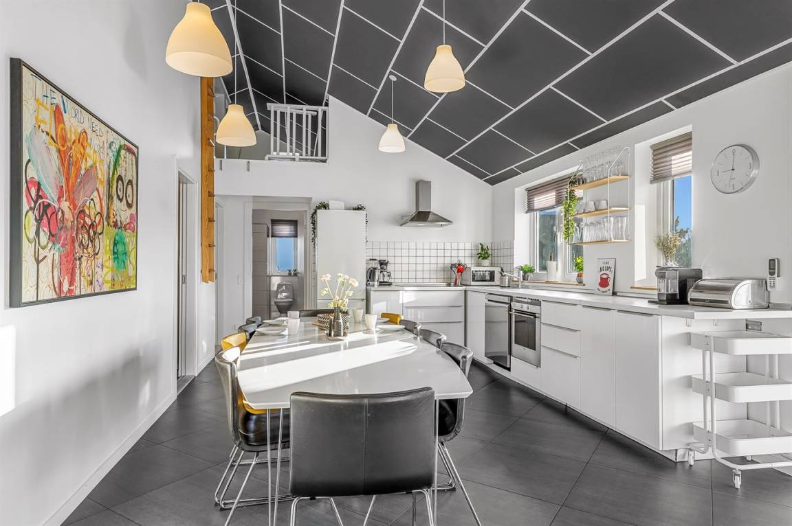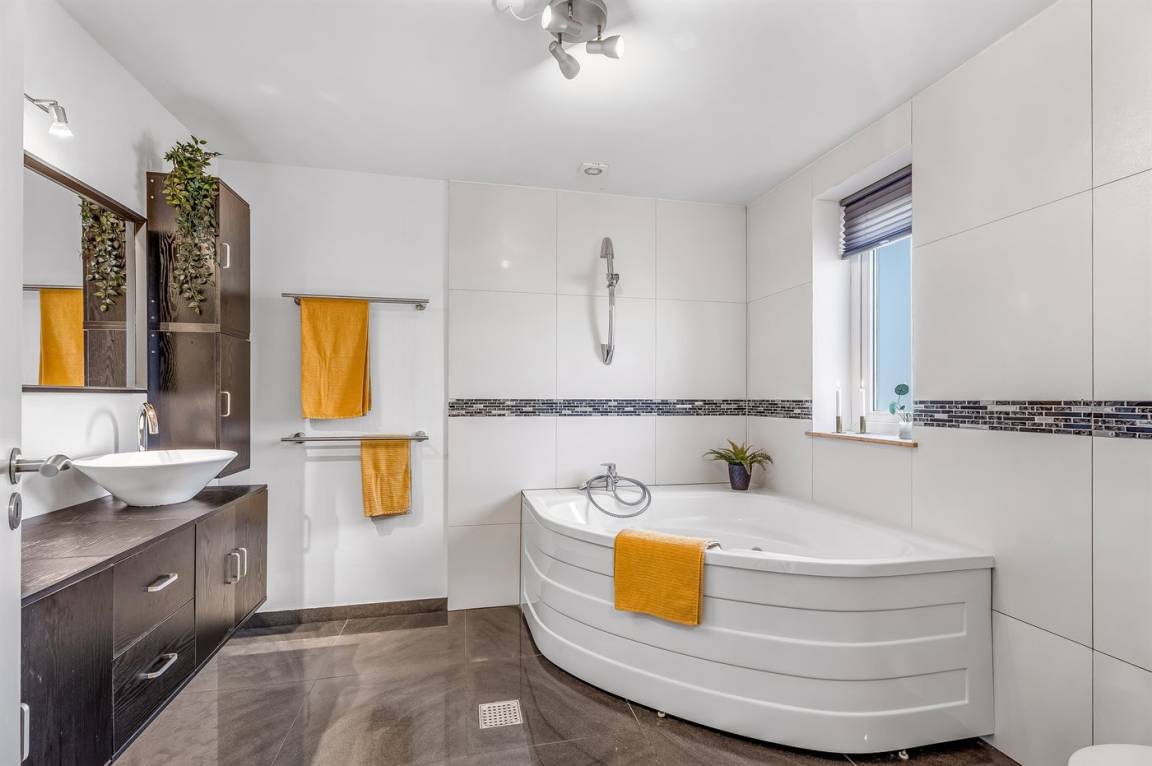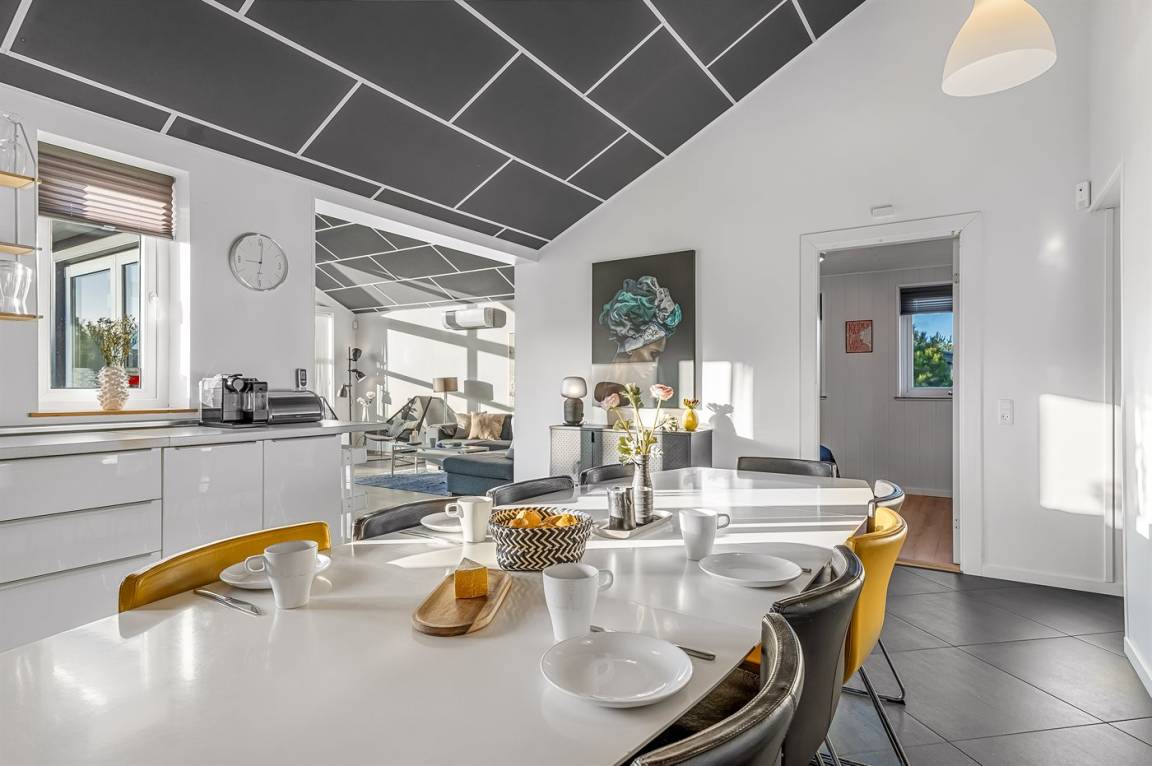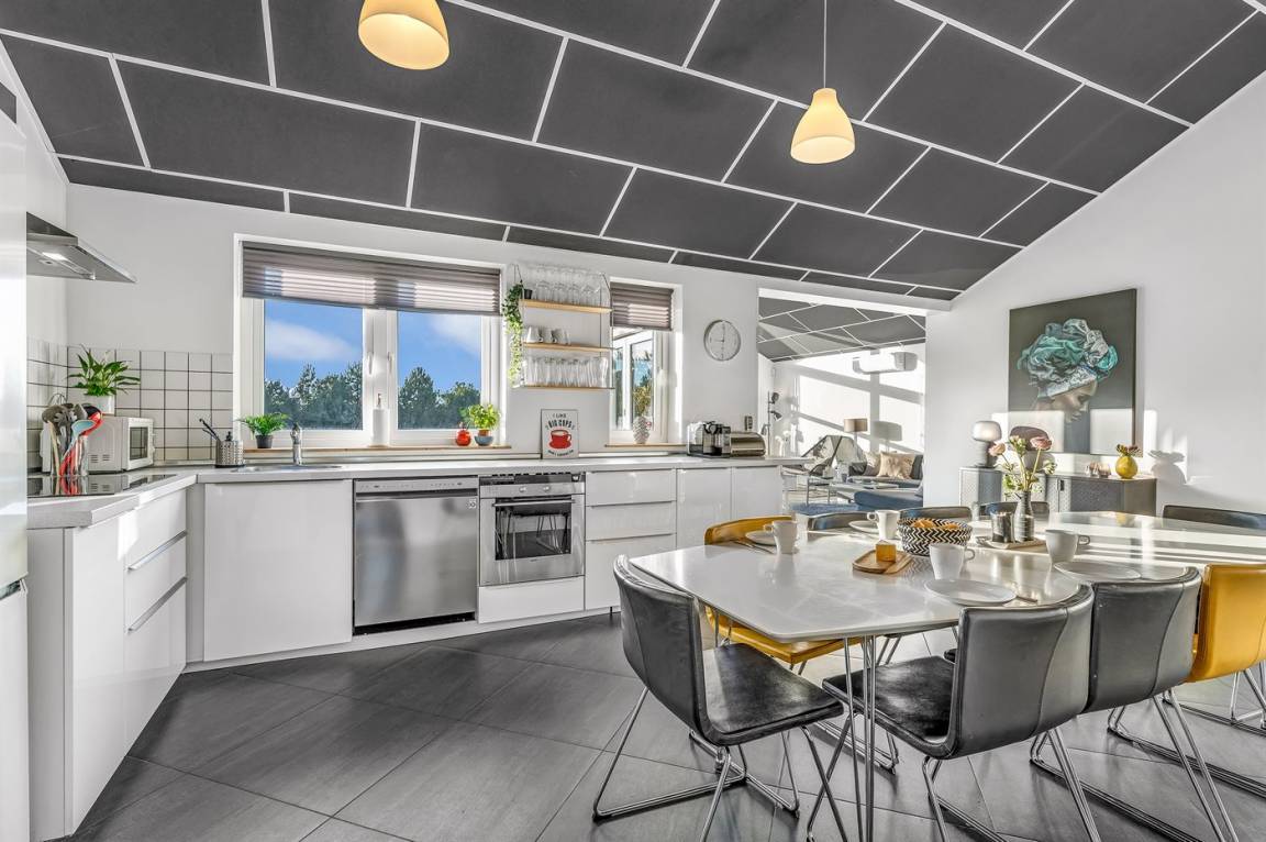 Ein helles und gemütlich eingerichtetes Ferienhaus mit u. a. Whirlpool. Es gibt Zugang zur Terrasse, wo du schöne Stunden an der frischen Luft verbringen kannst – hier kannst du die Sonne genießen und eine Mahlzeit auf dem Grill zubereiten. Auf dem großen Grundstück gibt es Platz für Ballspiele und andere Aktivitäten im Freien sowie verschiedene Spielgeräte für die Kinder.