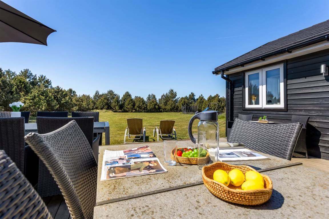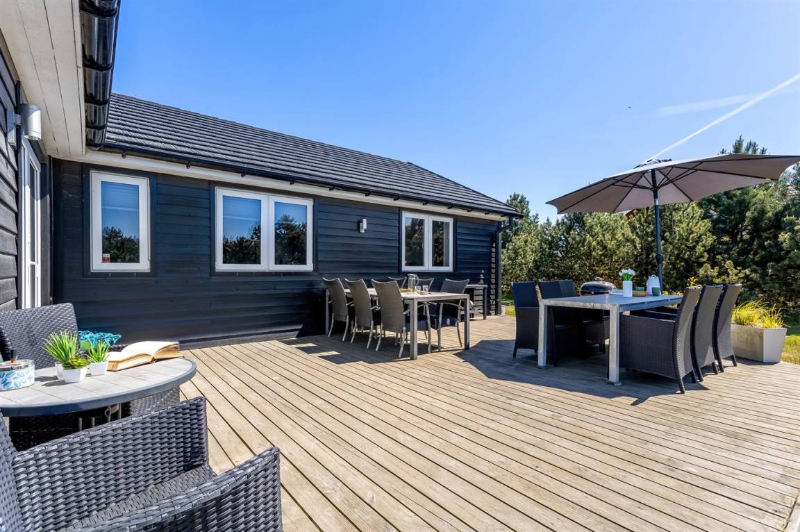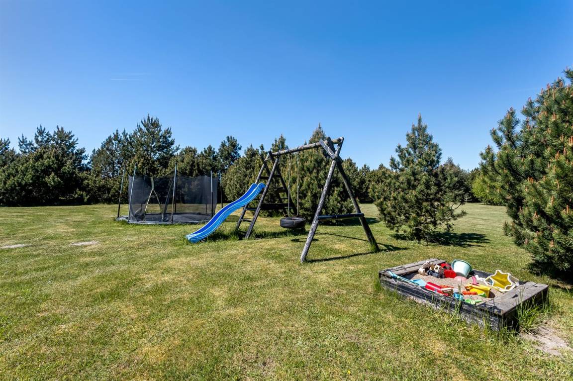 DraußenDie Ferienunterkunft liegt auf einem 1637 m² großen Gartengrundstück. Die Entfernung zum Meer beträgt 1450 m. Die nächste Einkaufsmöglichkeit liegt 1200 m entfernt. In einem Abstand von 500 m gibt es einen Golfplatz. Es steht ein offenes Terrassenareal zur Verfügung. Schaukel. Sandkasten. Kinderspielhaus. Trampolin. Rutsche. Es steht ein Grill zur Verfügung. Parkplatz auf dem Grundstück.
