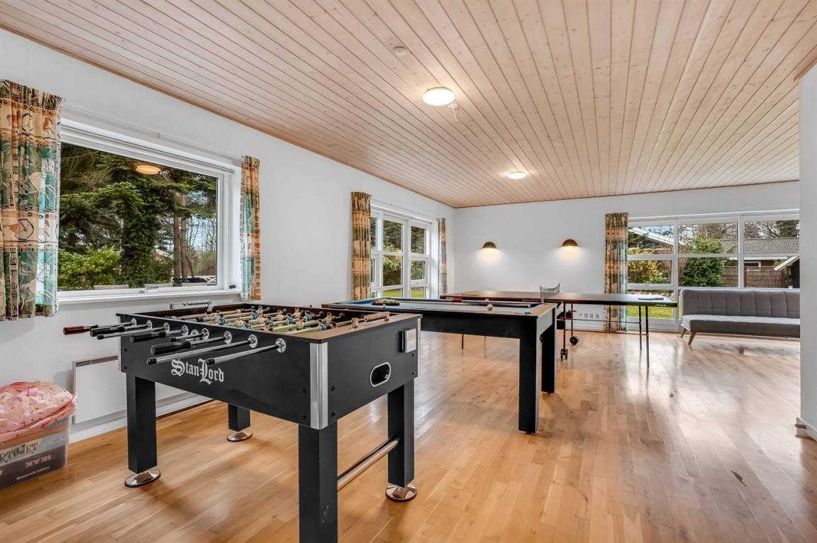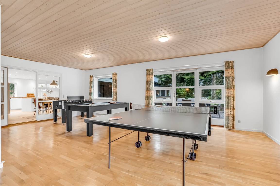 Vom Küchen-Wohnbereich aus gelangt man auf die fantastische Terrasse mit Weber Gasgrill – hier kann man es sich mit einem guten Buch gemütlich machen und sich von dem schönen Garten inspirieren lassen. Neben dem Küchen-Wohnbereich befindet sich ein großer und geräumiger Aktivitätsraum mit gutem Lichteinfall. Das Haus verfügt über insgesamt 6 Schlafzimmer und 3 Badezimmer – nur eine große Familie kann diesen Platz auszufüllen.