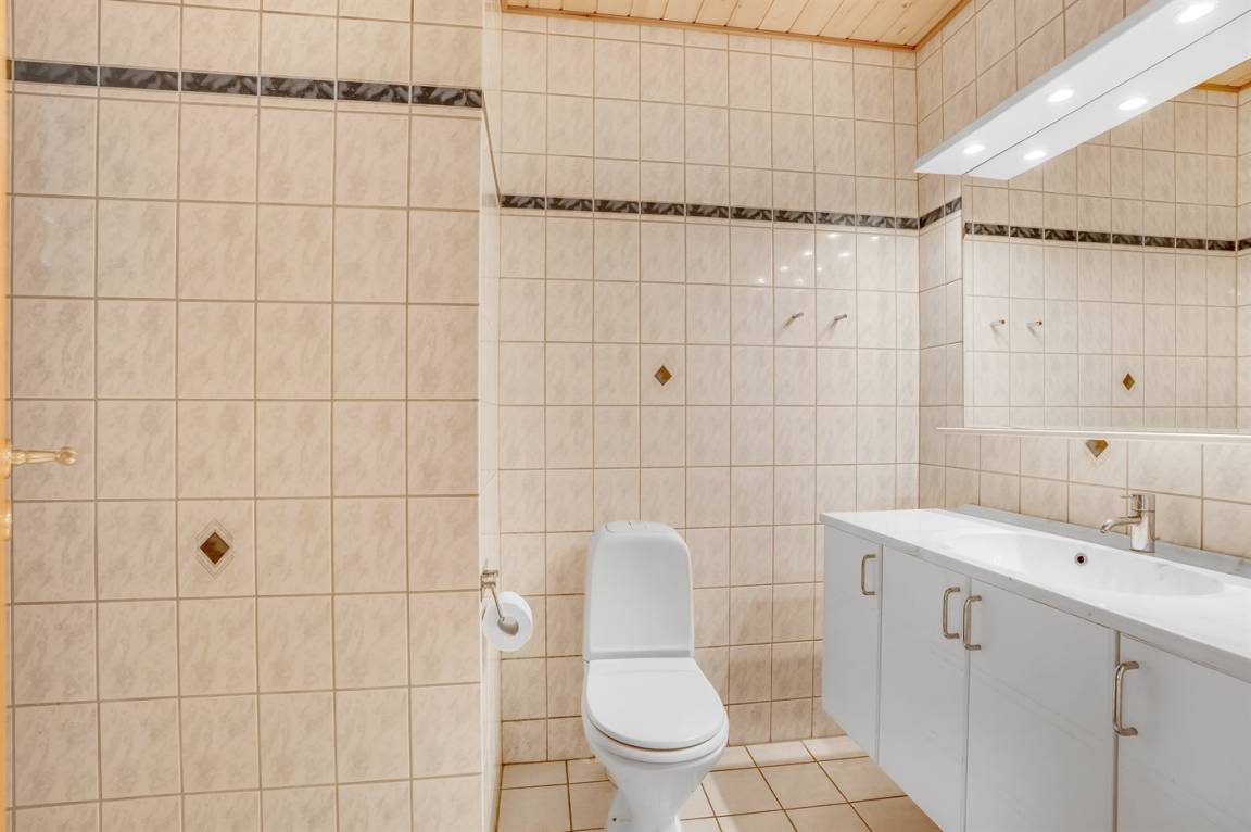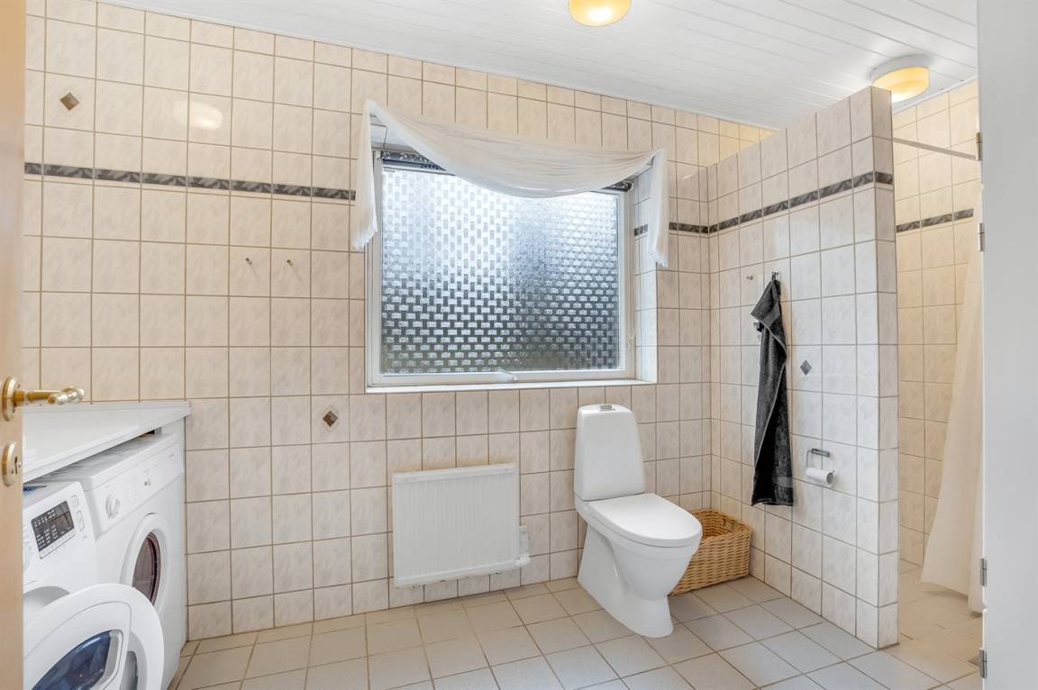 Es gibt elektrische Fußbodenheizung in allen Badezimmern, wovon eins mit Waschmaschine und Wäschetrockner ausgestattet ist.