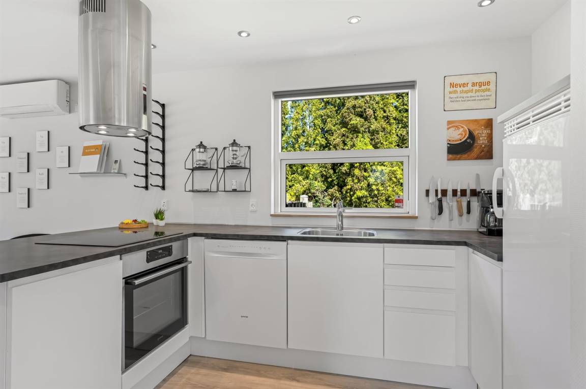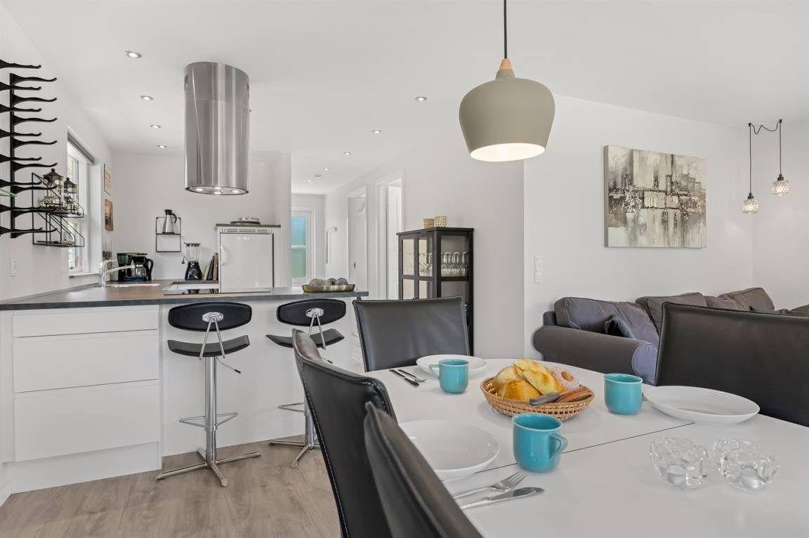 KücheDie Küche ist mit Kühlschrank ausgestattet. Außerdem gibt es 4 Induktions-Kochzonen, Umluftofen sowie Geschirrspüler.