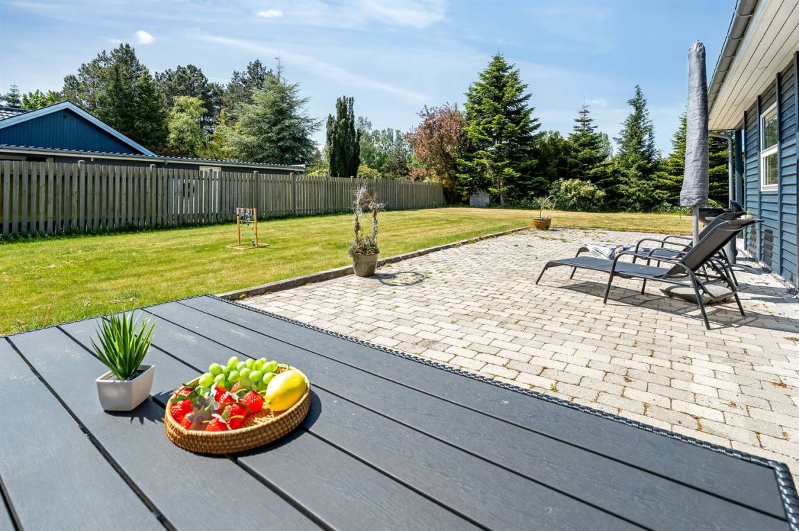Das vollständig eingezäunte Grundstück macht das Ferienhaus ideal für Urlaub mit Haustieren und kleinen Kindern.