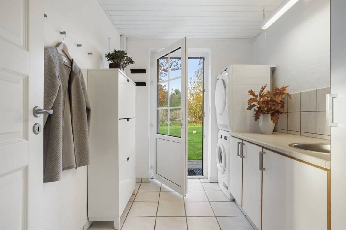 Es stehen Waschmaschine und Wäschetrockner sowie ein großer Kühlschrank zur Verfügung. Ein Kaminofen ist ebenfalls vorhanden. Für die jüngsten Feriengäste gibt es 1 Kinderbett und 2 Hochstühle.