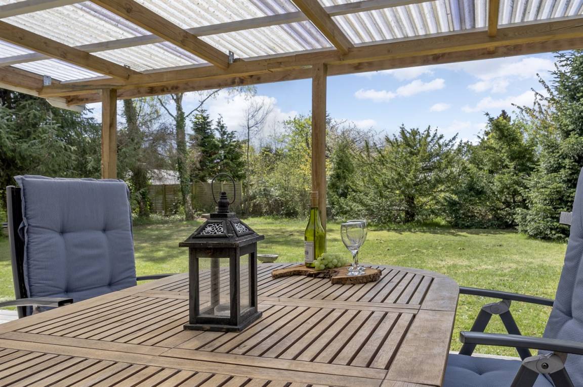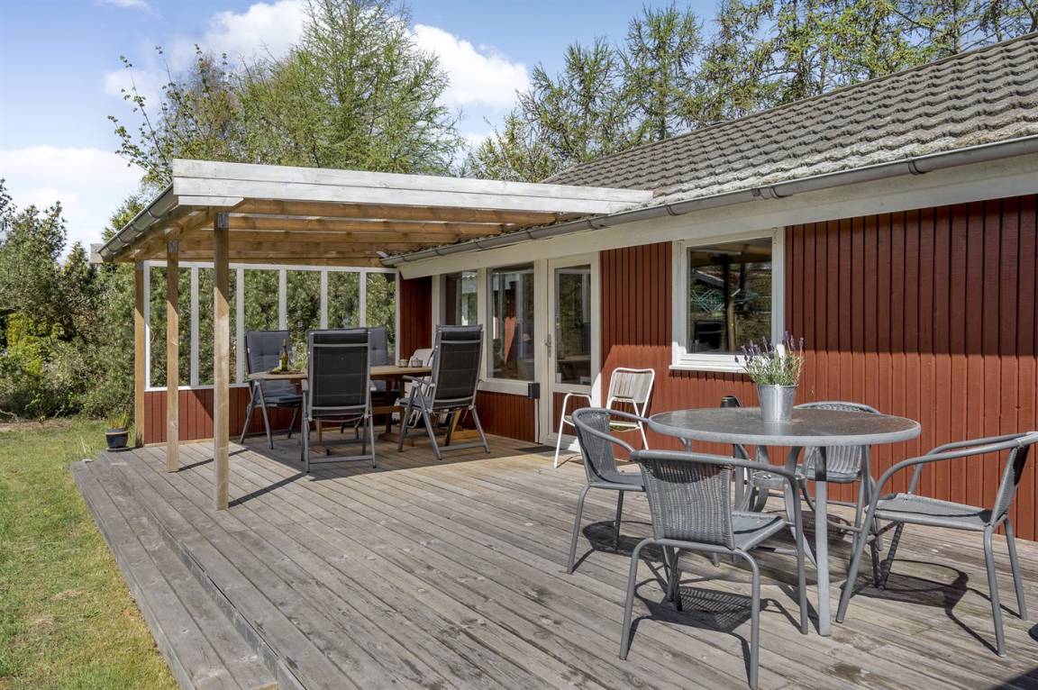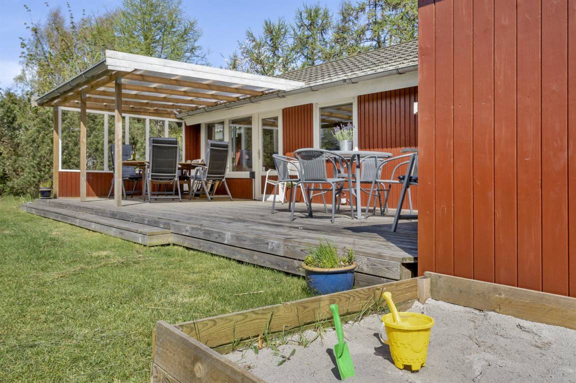DraußenDie Ferienunterkunft liegt auf einem 1001 m² großen Gartengrundstück. Die Entfernung zum Meer beträgt 750 m. Die nächste Einkaufsmöglichkeit liegt 750 m entfernt. In einem Abstand von 500 m gibt es einen Golfplatz. Es steht ein 18 m² Terrassenareal zur Verfügung. Außerdem gibt es 12 m² überdachte Terrasse. Schaukel. Sandkasten. Rutsche. Es steht ein Carport zur Verfügung. Parkplatz auf dem Grundstück.