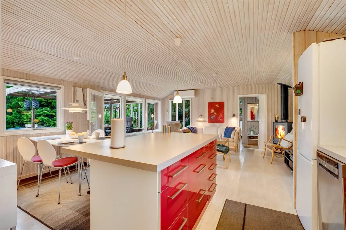 Das Ferienhaus eignet sich für 6 Personen sowie 1 Kleinkind bis zu 3 Jahren. Die Ferienunterkunft hat eine Wohnfläche von 64 m² und wurde 1973 gebaut. 2011 wurde die Ferienunterkunft teilweise renoviert. Haustiere dürfen nicht mitgebracht werden. Die Ferienunterkunft ist mit energiesparender Wärmepumpe ausgestattet. Tiefkühlmöglichkeit mit 60 Liter Nutzinhalt. Es gibt außerdem einen Kaminofen. Für die jüngsten Feriengäste sind 2 Kinderhochstühle vorhanden.
