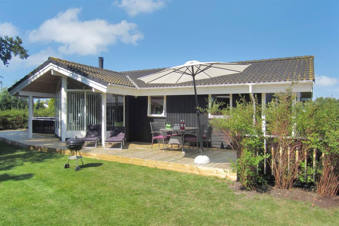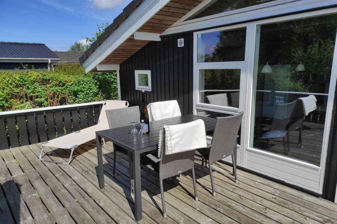 Das helle und einladende Haus ist auf einem Naturgrundstück dicht an einem der kinderfreundlichsten Sandbadestrände Dänemarks aufgeführt. Zum Haus gehört eine teilweise überdachte Terrasse mit Gartenmöbeln.