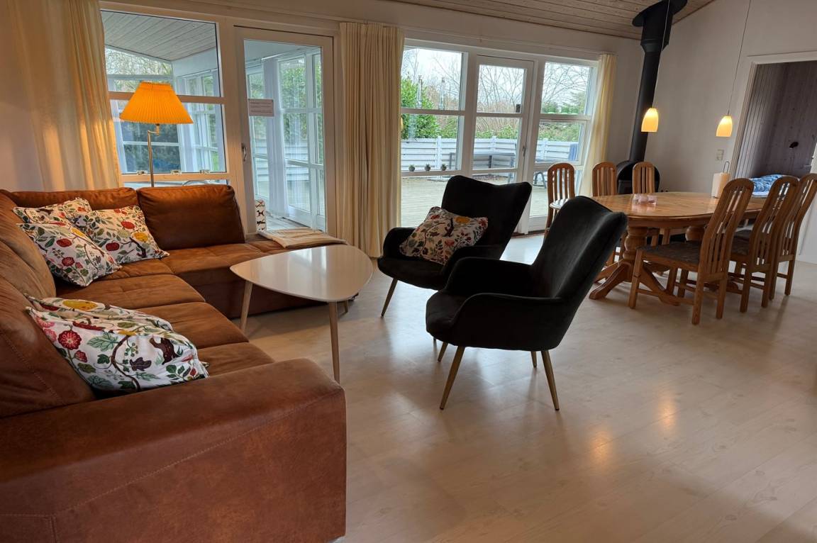 EinrichtungDas Ferienhaus eignet sich für 8 Personen sowie 1 Kleinkind bis zu 3 Jahren. Die Ferienunterkunft hat eine Wohnfläche von 140 m² und wurde 2006 gebaut. 2018 wurde die Ferienunterkunft teilweise renoviert. Es ist erlaubt 1 Haustier mitzubringen. Fußbodenheizung in allen Räumen. Die Ferienunterkunft ist mit Waschmaschine ausgestattet. Wäschetrockner. Tiefkühlmöglichkeit mit 100 Liter Nutzinhalt. Es gibt außerdem einen Kaminofen. Für die jüngsten Feriengäste ist 1 Kinderhochstuhl vorhanden.