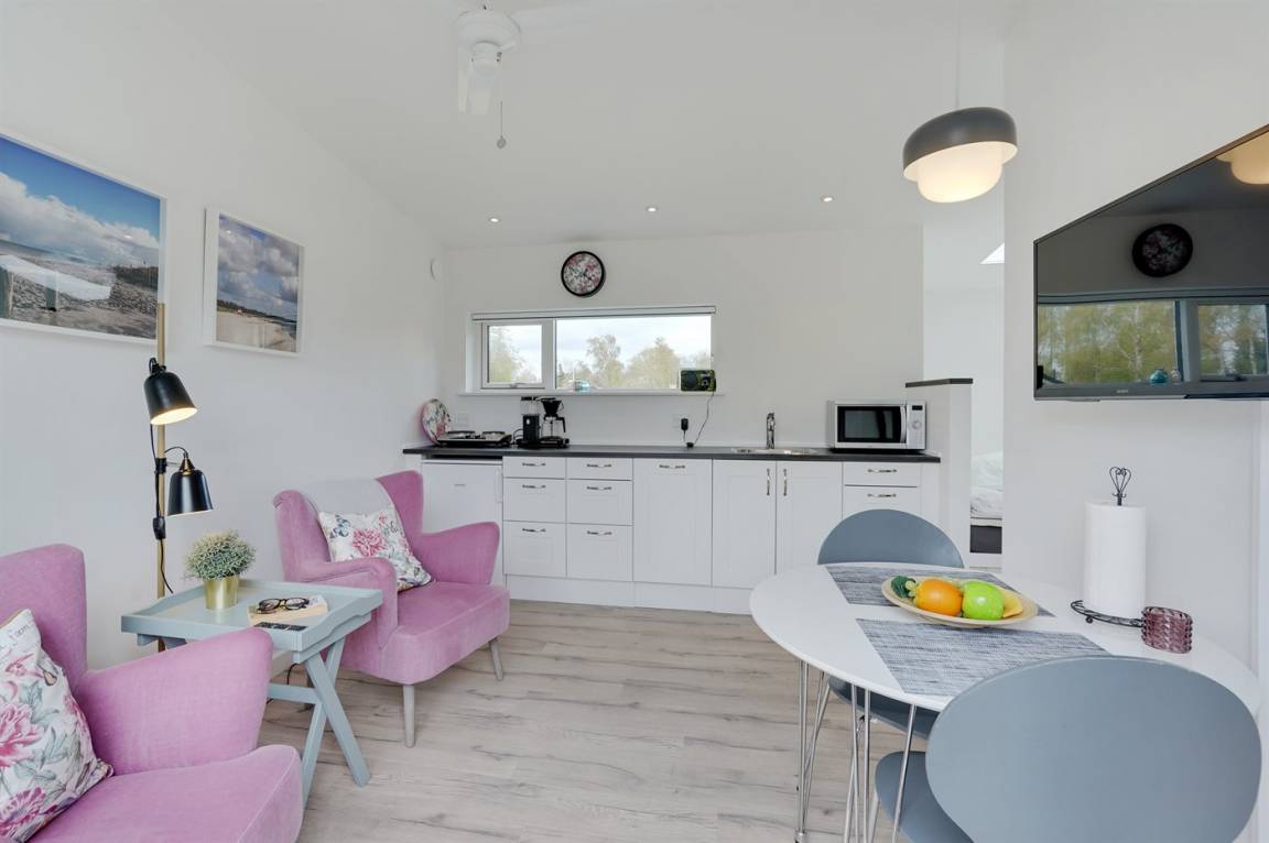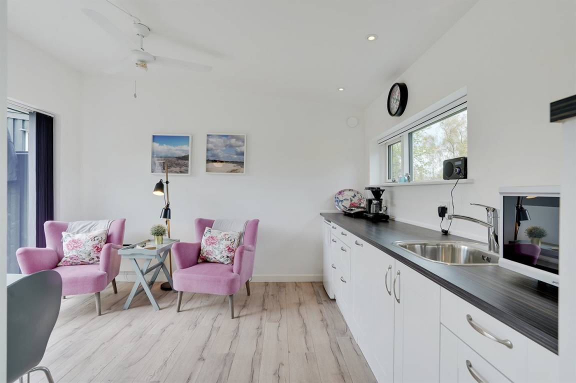 Diese neu erbaute, kleine Ferienwohnung liegt in einem beliebten und naturschönen Gebiet dicht an einem kinderfreundlichen Badestrand. Übrigens: Die Schlafplätze befinden sich im Alkoven im Wohnzimmer (siehe Grundriss).