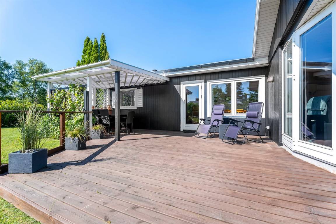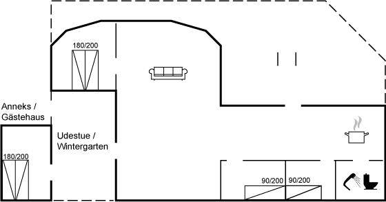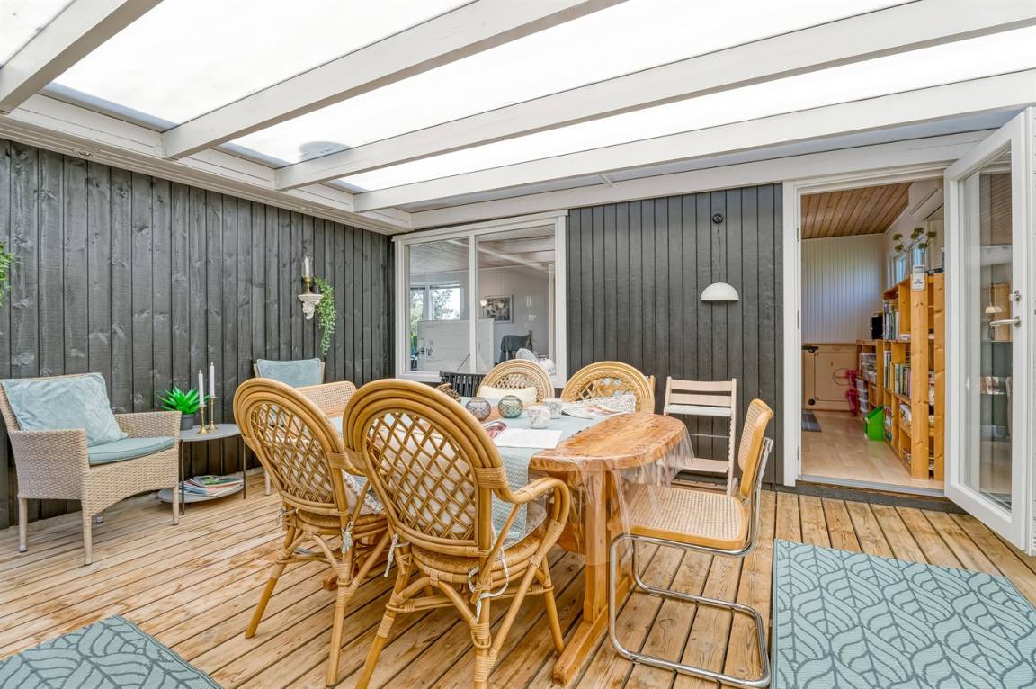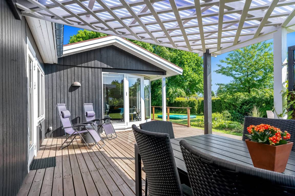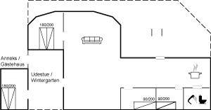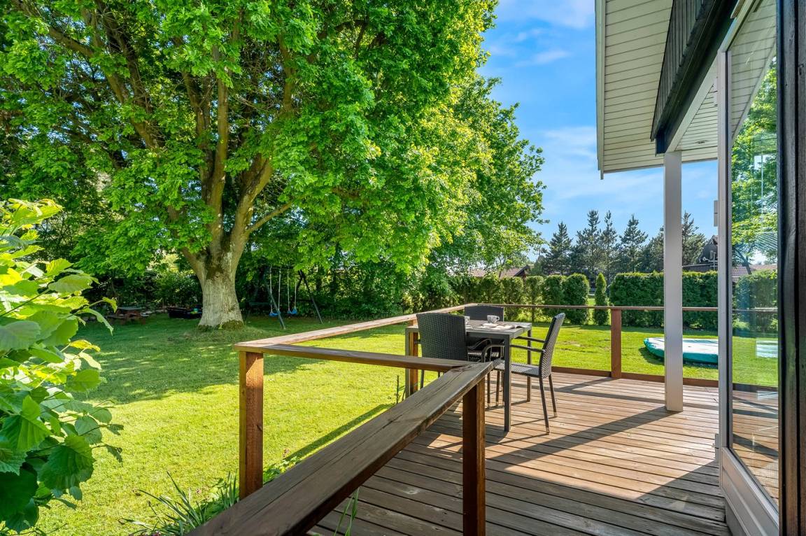 DraußenDie Ferienunterkunft liegt auf einem 1111 m² großen Gartengrundstück. Die Entfernung zum Meer beträgt 700 m. Die nächste Einkaufsmöglichkeit liegt 400 m entfernt. Es steht ein 30 m² Terrassenareal zur Verfügung. Außerdem gibt es 22 m² überdachte Terrasse. Zutritt zu einem Wintergarten. Geräteraum. Schaukel. Sandkasten. Trampolin (maximale Belastung 100 kg). Es steht ein Carport zur Verfügung. Parkplatz auf dem Grundstück.