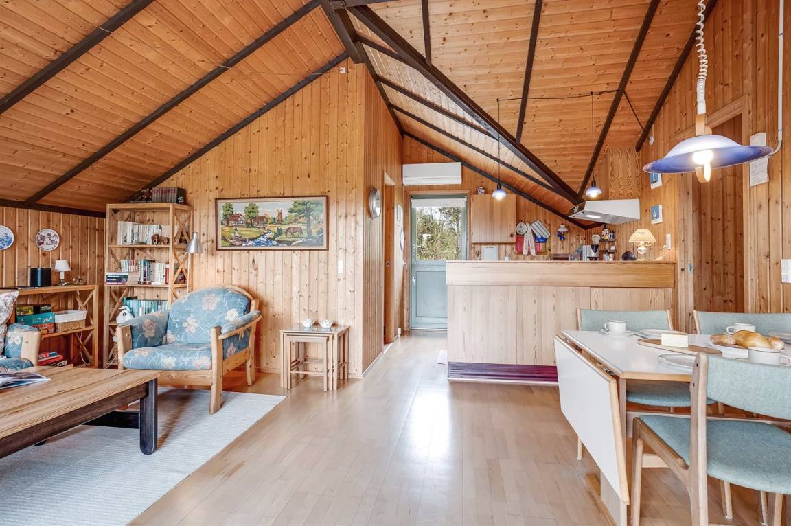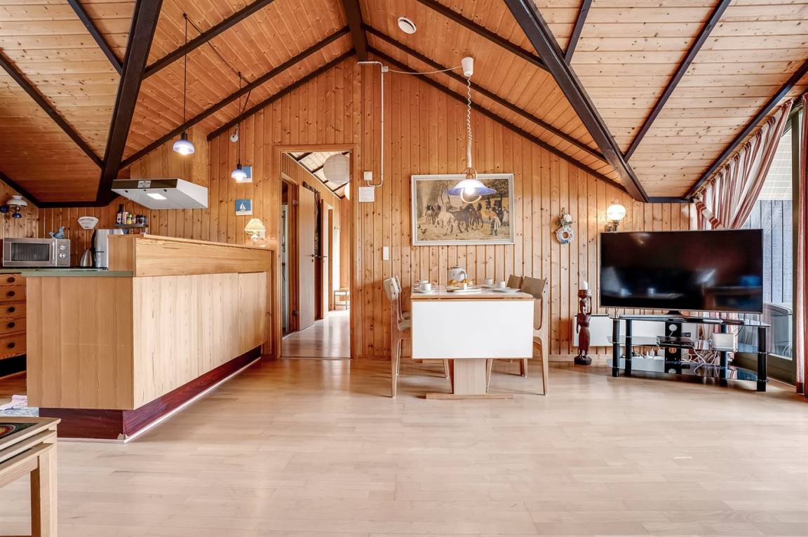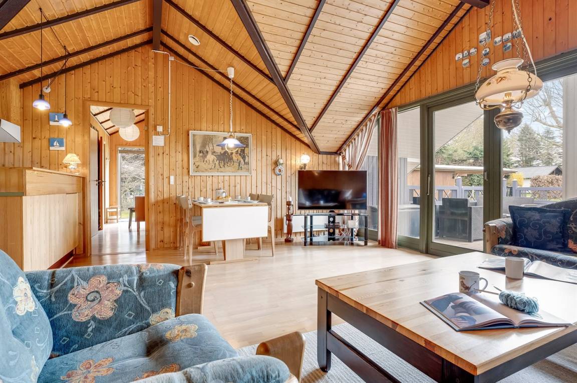 Verbringe deinen Urlaub in diesem netten und gemütlich eingerichtetem Ferienhaus, das dir und deiner Familie eine wunderbare Auszeit vom hektischen Alltag bietet. Frühstücke am Esstisch oder auf der sonnigen Terrasse, wo du die frische Luft und den beruhigenden Blick ins Grüne genießen kannst. Der helle Wohnbereich mit dem stimmungsvollen Holzinterieur und den großen Fensterfronten schafft eine Atmosphäre der völligen Entspannung und Ruhe. Mach es dir auf den bequemen Sofas gemütlich, sehe einen guten Film oder lies ein spannendes Buch.