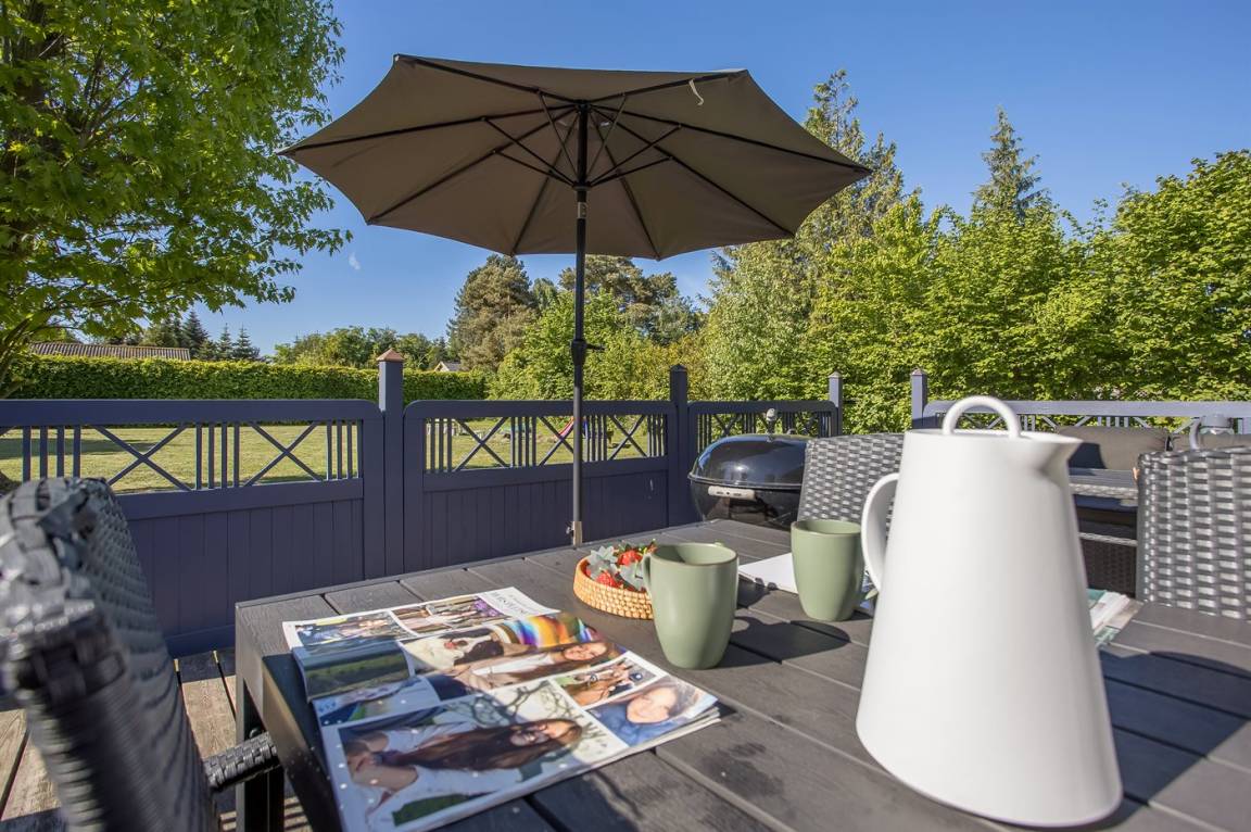 Die Terrasse lädt zu schönen Abenden im Freien mit Leckereien vom Grill ein, während die Kinder im großen Garten spielen. Das weitläufige Außengelände bietet jede Menge Platz für Aktivitäten wie Fußball oder andere Ballspiele. Entspanne dich auf der Terrasse und lass den Alltagsstress hinter dir. Auch die Lagerfeuerstelle im eingezäunten Garten lädt zum gemütlichen Beisammensein und zur Entspannung ein.