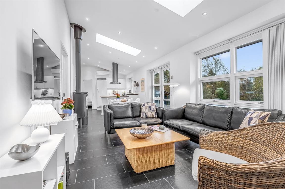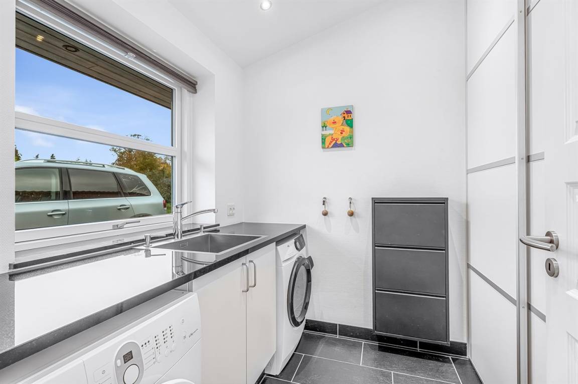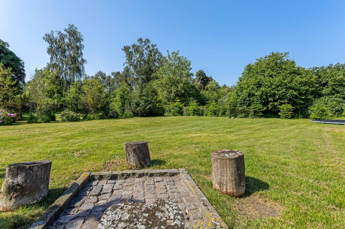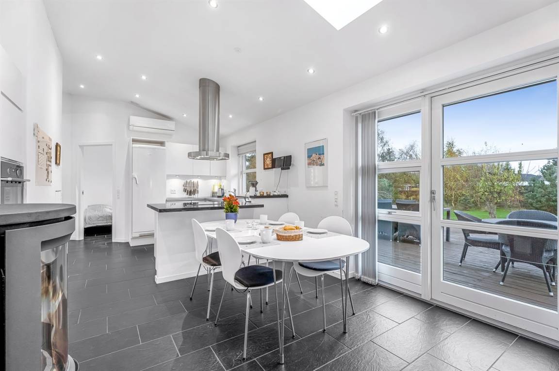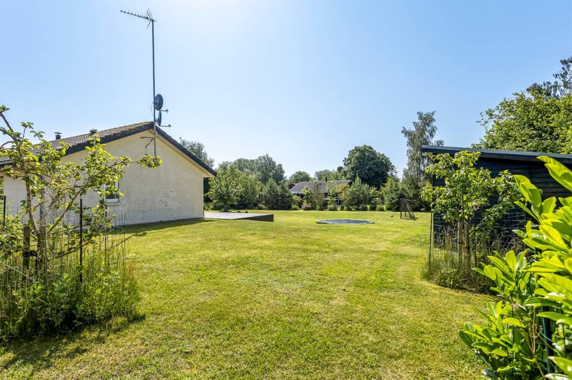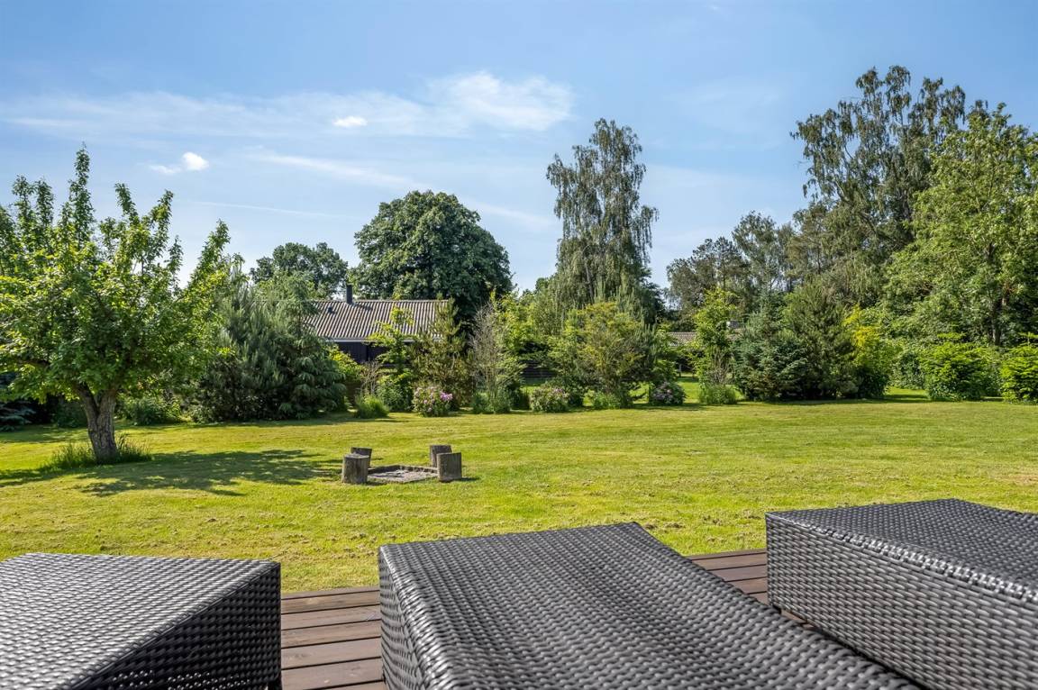 Zum Haus gehört eine schöne Terrasse mit Gartenmöbeln und Grill, wo du viele Stunden im Freien verbringen kannst. Auf dem großen Grundstück gibt es viel Platz für Ballspiele und andere Aktivtäten im Freien.