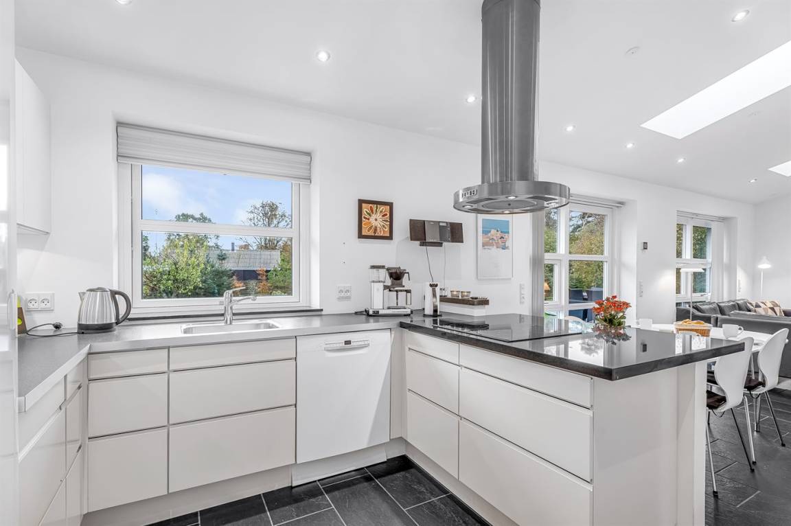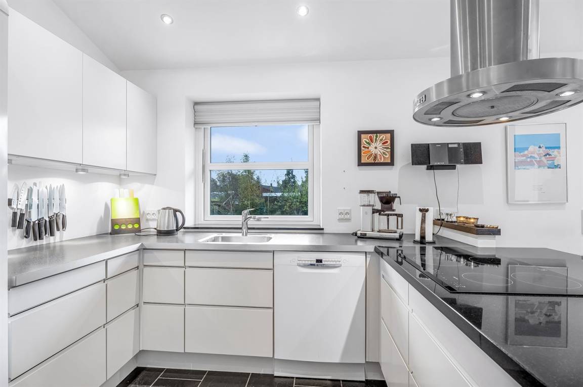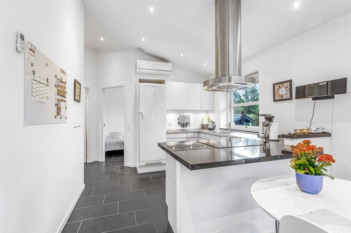 KücheDie Küche ist mit Kühlschrank ausgestattet. Außerdem gibt es 4 Induktions-Kochzonen, Umluftofen, Mikrowelle sowie Geschirrspüler.
