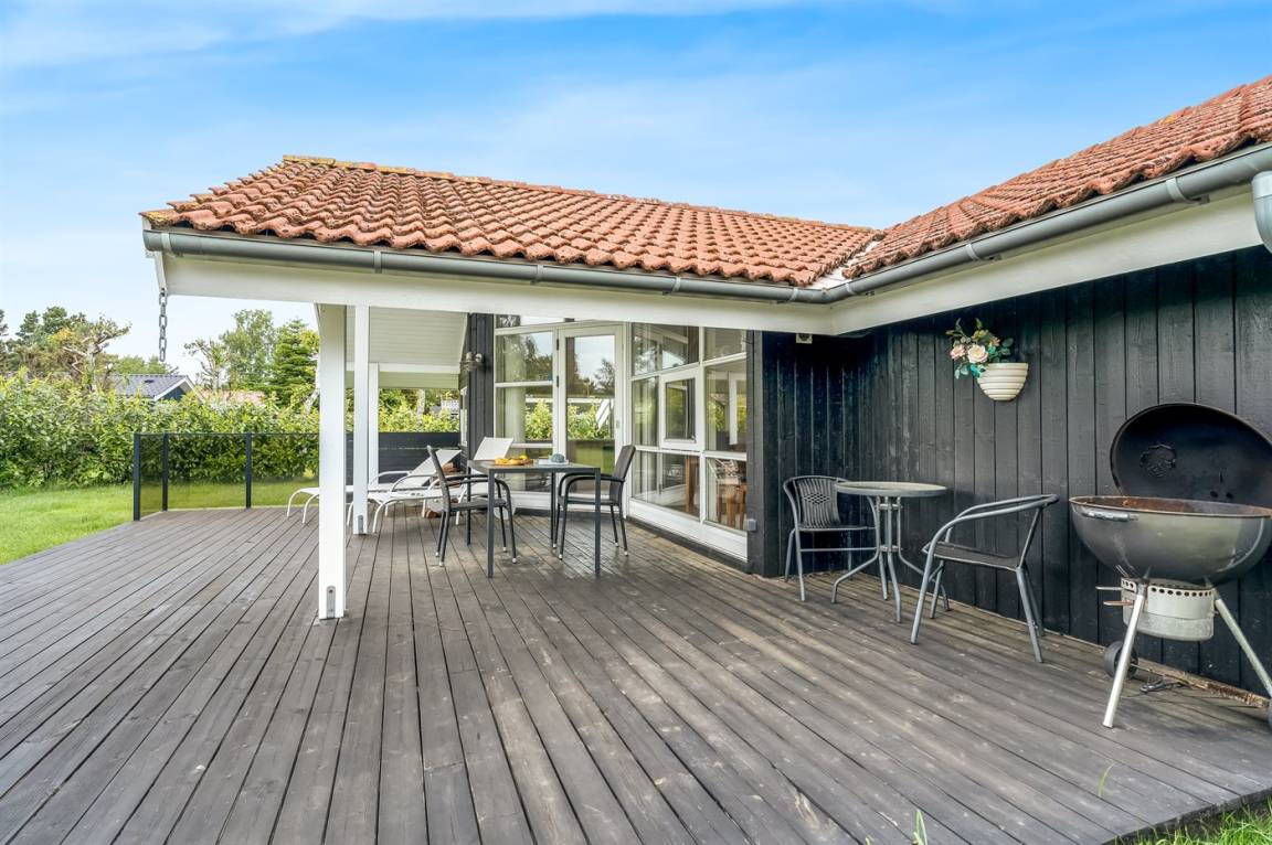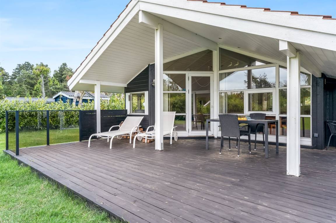 Dieses schöne Ferienhaus mit einer gemütlichen Holzterrasse liegt in einer Sackgasse am Rande einer großen attraktiven Ferienhaussiedlung zwischen dem Vogelschutzgebiet Bøtø und einem kinderfreundlichen Badestrand. Übrigens: 2 Schlafplätze befinden sich in einem Alkoven im Wohnzimmer.
