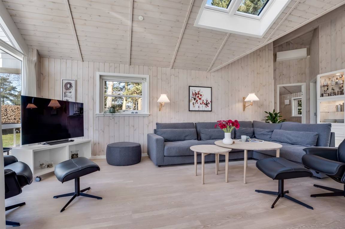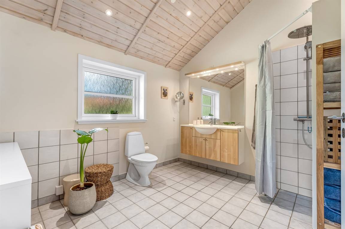 Das Haus ist gemütlich eingerichtet und verfügt über eine große Terrasse, die teils überdacht, teils offen ist, mit ausreichend Platz zum Entspannen in Lounge-Möbeln und auf Liegestühlen usw. Zudem gibt es einen Grill für die schönen Sommerabende. Unter der abgeschirmten Außendusche kann man sich nach einem Strandbesuch oder einem Ballspiel auf dem schönen Grundstück erfrischen.