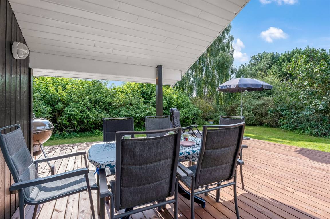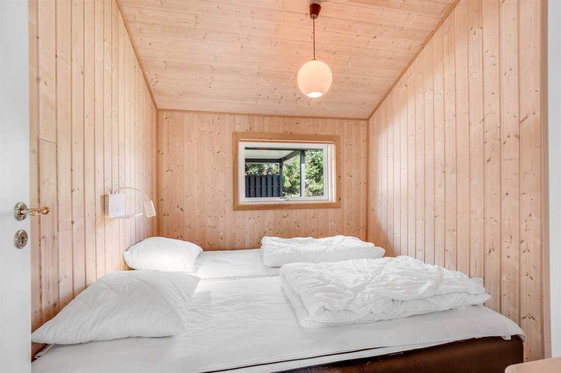 Das Haus ist hell und freundlich eingerichtet mit zwei guten Schlafzimmern, einem Badezimmer sowie einer offenen Küche in Verbindung mit dem Ess- und Wohnzimmer. Im Wohnzimmer gibt es eine gemütliche Alkove, in der die Kinder gerne übernachten werden. Hier gibt es auch einen Ausgang zu einer schönen Holzterrasse mit komfortablen Gartenmöbeln und Grill.