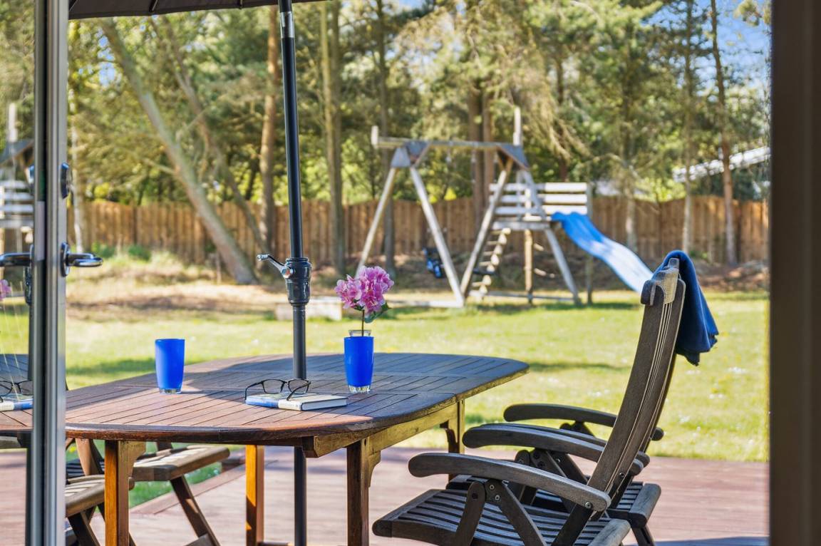 DraußenDie Ferienunterkunft liegt auf einem 1370 m² großen Naturgrundstück. Das Grundstück ist eingezäunt. Die Entfernung zum Meer beträgt 1200 m. Die nächste Einkaufsmöglichkeit liegt 2300 m entfernt. In einem Abstand von 3800 m gibt es einen Golfplatz. Es steht ein offenes Terrassenareal zur Verfügung. Außerdem gibt es überdachte Terrasse. Schaukel. Sandkasten. Rutsche. Fußballtor. Es steht ein Grill zur Verfügung.Es steht eine Garage zur Verfügung. Parkplatz auf dem Grundstück.