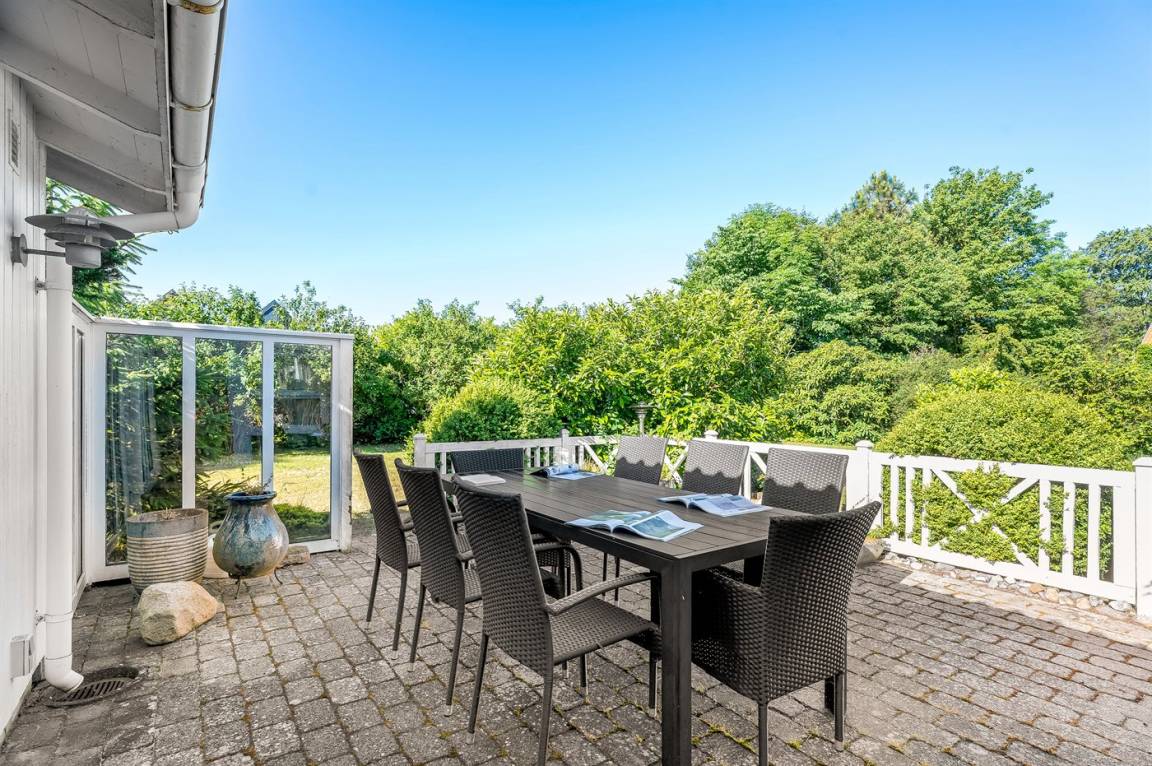 DraußenDie Ferienunterkunft liegt auf einem 1271 m² großen Gartengrundstück. Die Entfernung zum Meer beträgt 50 m. Die nächste Einkaufsmöglichkeit liegt 150 m entfernt. In einem Abstand von 1500 m gibt es einen Golfplatz. Es steht ein offenes Terrassenareal zur Verfügung. Zutritt zu einem Wintergarten. Geräteraum. Die Entfernung zu einem Spielplatz beträgt 100 m. Es steht ein Grill zur Verfügung. Es steht ein Carport zur Verfügung. Es ist ein Ladestecker für Elektroautos installiert. Mit einer Ladeleistung von 11 kW. Parkplatz auf dem Grundstück.