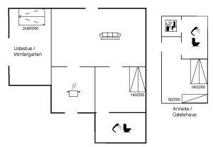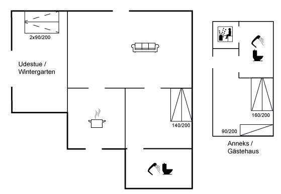 SchlafverhältnisseDie Schlafplätze verteilen sich auf 2 Schlafräume. 4 Schlafplätze in Doppelbetten.1 Schlafplatz in einem Einzelbett. 2 Schlafplätze auf einer Doppelschlafcouch. 3 von diesen Schlafplätzen befinden sich im Gästehaus und 2 befinden sich im Wintergarten.