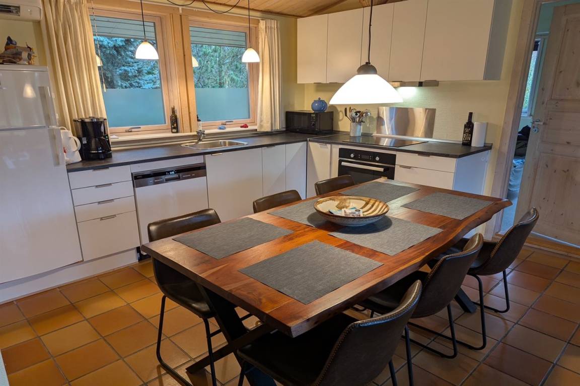 Das Ferienhaus eignet sich für 6 Personen sowie 1 Kleinkind bis zu 3 Jahren. 2 der Schlafplätze eignen sich jedoch nur für größere Kinder (4-11 Jahre). Die Ferienunterkunft hat eine Wohnfläche von 79 m² und wurde 2001 gebaut. Haustiere dürfen nicht mitgebracht werden. Die Ferienunterkunft ist mit energiefreundlicher Luft-Luft- Wärmepumpe ausgestattet. Die Ferienunterkunft ist mit Waschmaschine ausgestattet. Tiefkühlmöglichkeit mit 30 Liter Nutzinhalt. Es gibt außerdem einen Kaminofen. Für die jüngsten Feriengäste ist 1 Kinderhochstuhl vorhanden.