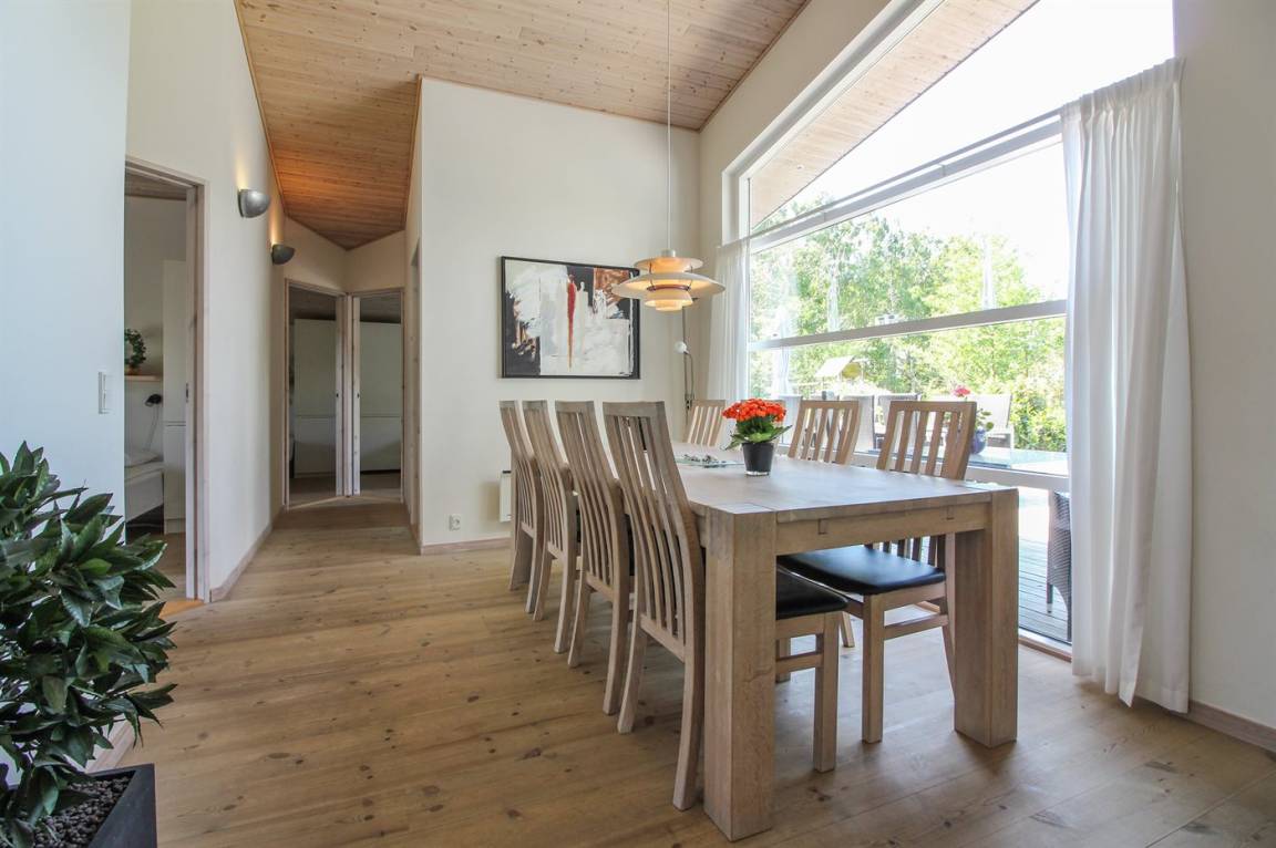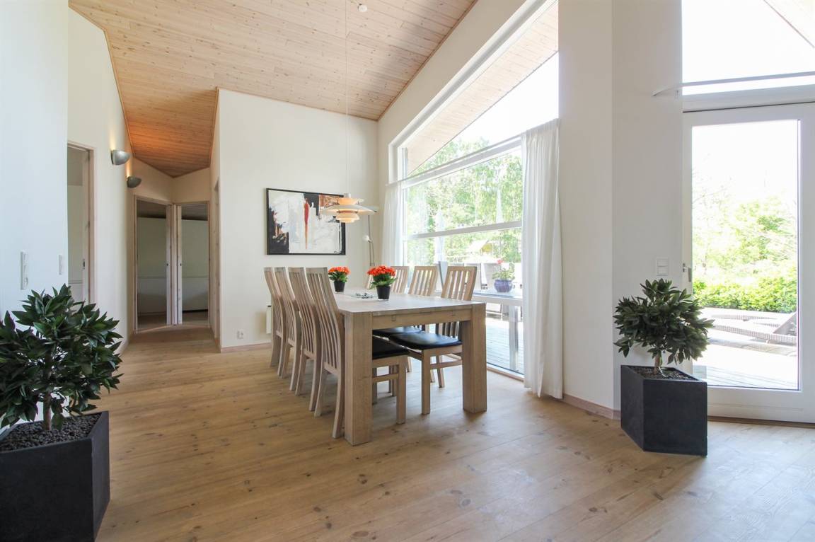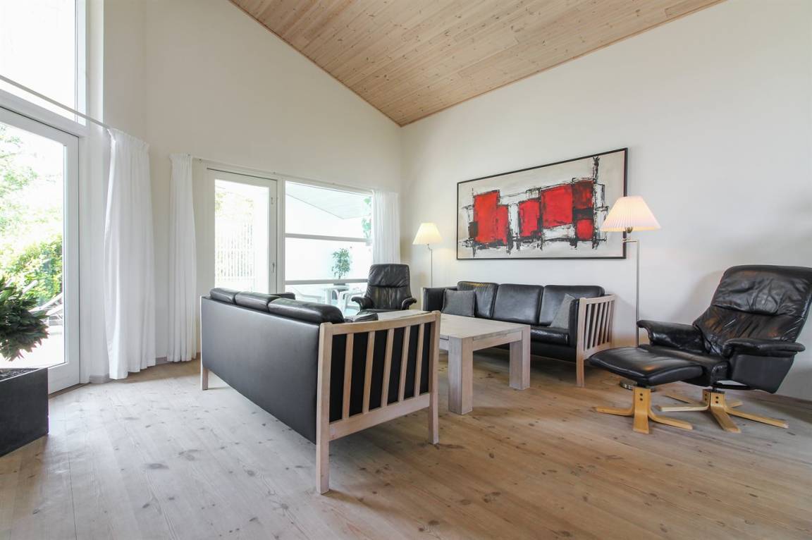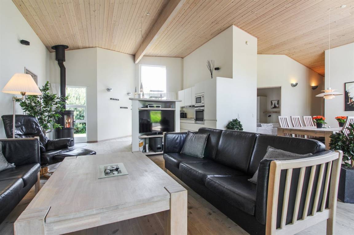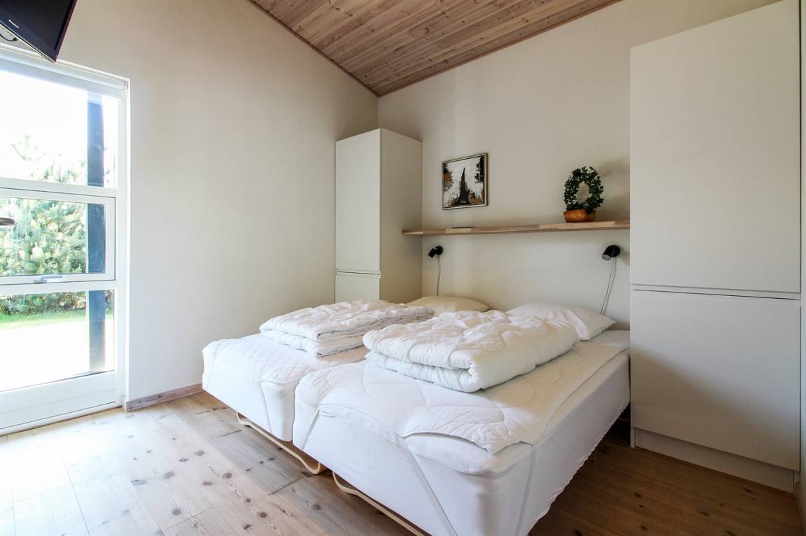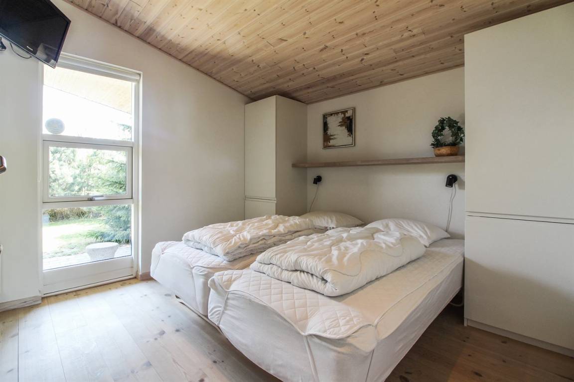 Das Haus ist exklusiv und komfortabel eingerichtet. Im Jahr 2025 wurden in Wohnzimmer, Küche und Zimmern neue, helle Holzböden verlegt, die zusammen mit den hellen Decken eine leichte und luftige Atmosphäre schaffen. Im Flur gibt es beheizten Klinkerboden. Die 8 Schlafplätze verteilen sich auf 4 Zimmer: 3 mit Doppelbett und 1 mit 2 Einzelbetten. 2 der Schlafzimmer sind mit 26" TV mit eingebautem DVD-Spieler ausgestattet.
