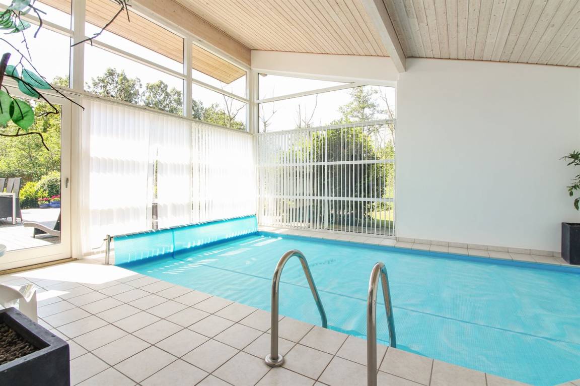 In der schönen Poolabteilung stehen, außer dem Swimmingpool (5,0 x 3,0 x 1,3 m) auch 2-Pers. Whirlpool sowie Badezimmer mit beheizbarem Klinkerboden, Duschnische, Waschmaschine und Wäschetrockner sowie Sauna zu Ihrer Verfügung. In der Poolabteilung gibt es ferner einen Sternenhimmel, separate Musikanlage und Zutritt zur großen Terrasse. Zusätzliches Badezimmer, ebenfalls mit beheizbarem Klinkerboden und Duschnische. Kinderhochstuhl und Kinderbett im Haus. Doppelcarport und Schuppen stehen zur Verfügung.