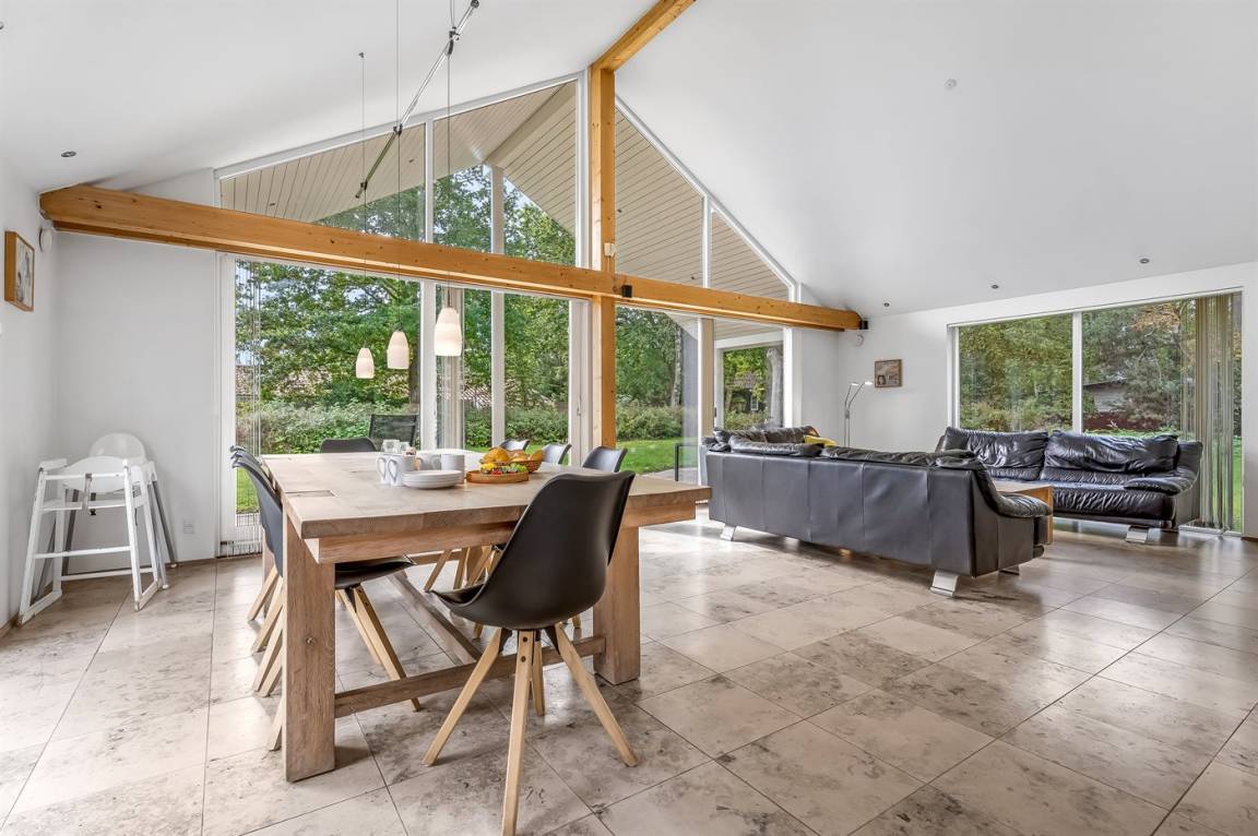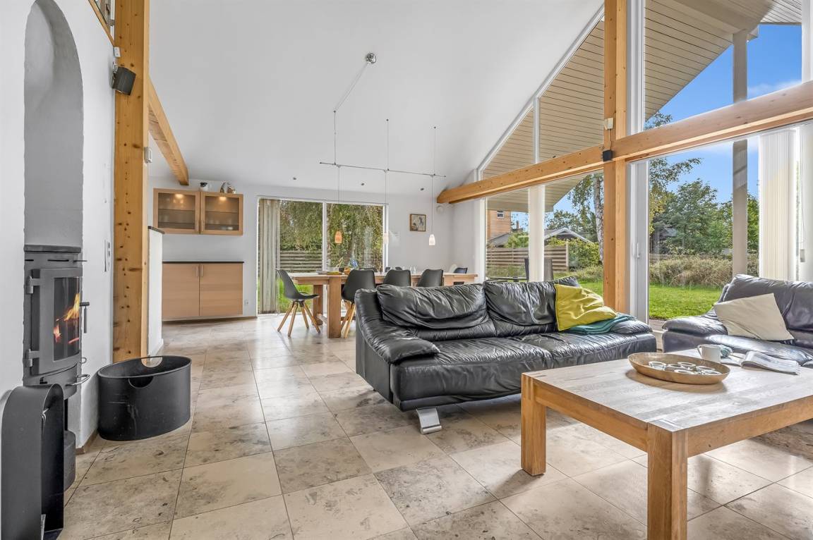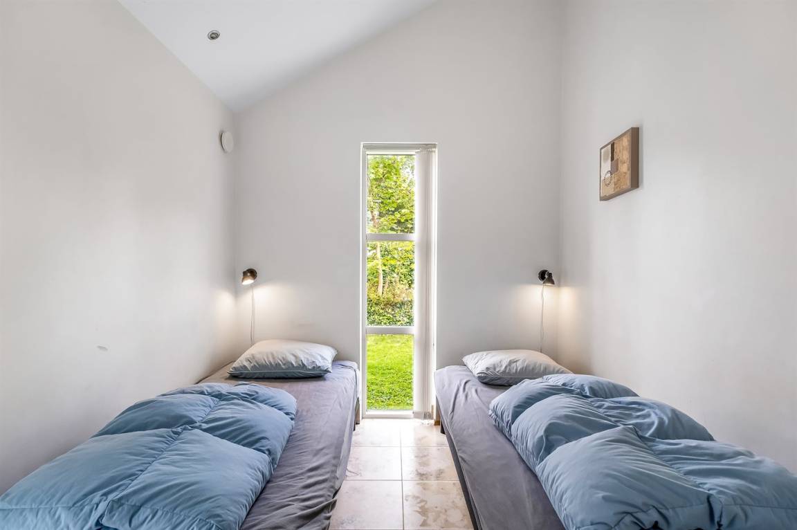 Das Ferienhaus ist architektonisch gestaltet und befindet sich auf einem Natur-/Gartengrundstück. Es ist eingerichtet mit einem Eingangsbereich sowie einer großen Wohnküche. Es gibt zwei Badezimmer mit Marmordusche. Drei schöne Schlafzimmer mit Einzelbetten, die Ihr bei Bedarf zusammenschieben könnt. Außerdem gibt es ein großes offenes Obergeschoss mit Stehhöhe. Die Natursteinböden im Haus sind beheizt.