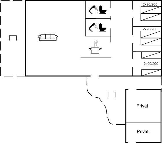 SchlafverhältnisseDie Schlafplätze verteilen sich auf 3 Schlafräume. 6 Schlafplätze in Einzelbetten. 2 Schlafplätze auf Matratzen. 2 von diesen Schlafplätzen befinden sich im offenen Obergeschoss. Ferner steht ein Kinderbett zur Verfügung.