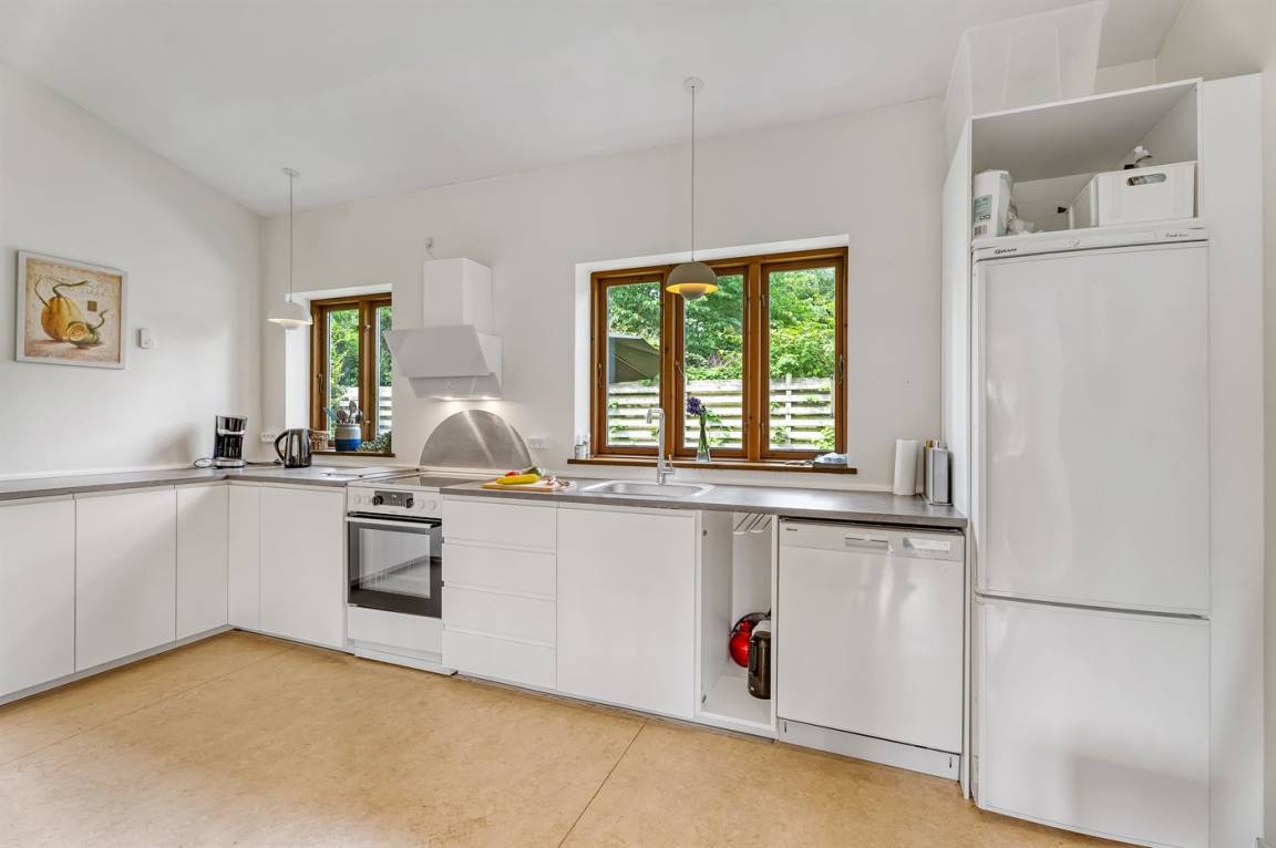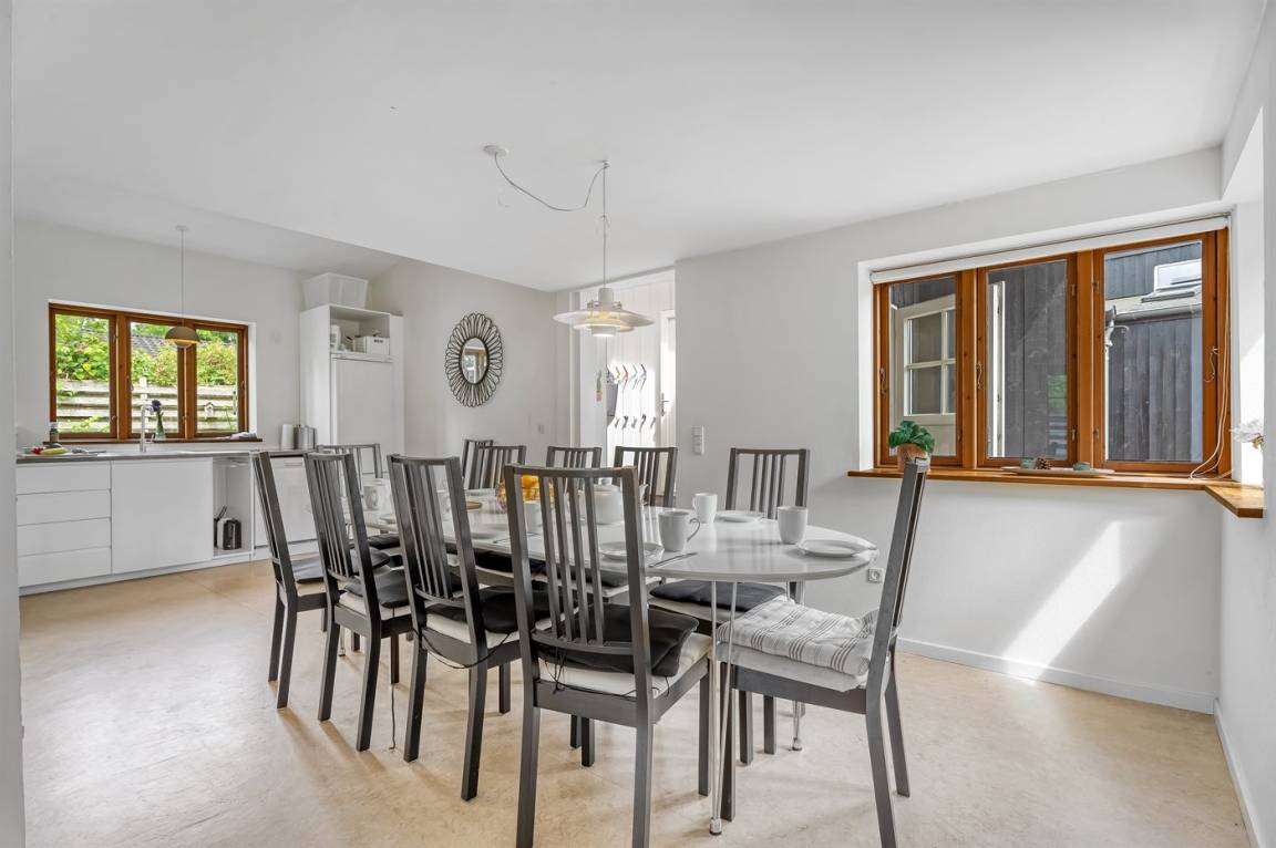 Draußen gibt es viel Platz mit geschützten Ecken, Gartenmöbeln, großer Lagerfeuerstelle und Gartengrill. Das Ferienhaus ist besonders für Familien geeignet, die gerne in der Nähe von Wasser, Einkaufsmöglichkeiten, Zentrum und dem Kjørups Kro sein möchten.