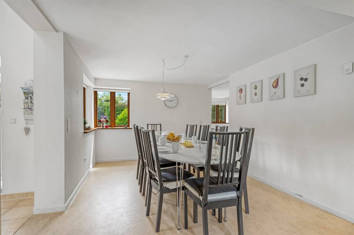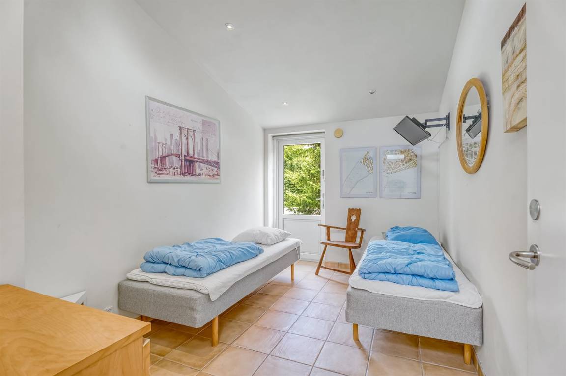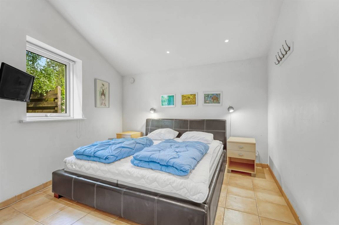 Weiter gibt es einen Hauswirtschaftsraum, eine große und ganz neue Wohnküche, ein Wohnzimmer mit TV, WLAN, deutschen und dänischen Kanälen sowie einer Spielkonsole. Ein Badezimmer mit unter anderem einem Whirlpool liegt neben dem Wohnzimmer. Im 1. Stock befinden sich drei Schlafzimmer und ein Flur mit Ausgang zum Balkon. Es gibt zwei Badezimmer im Haus sowie eine Dusche im Poolraum und zwei Gäste-WCs sowie eine kombinierte Waschmaschine/Trockner.
