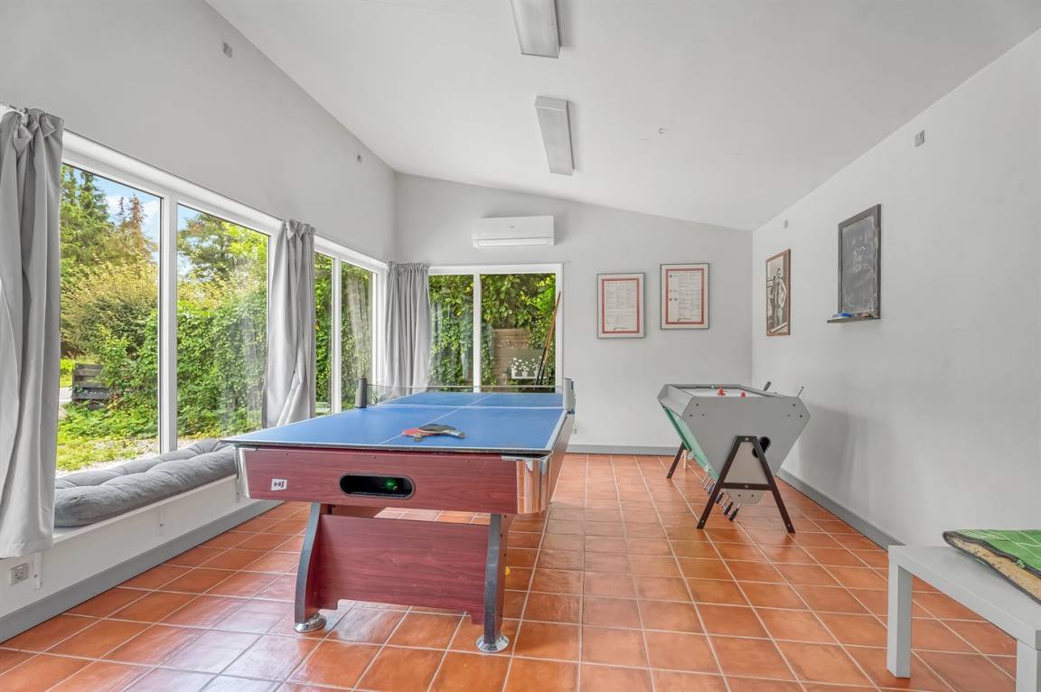 Das Ferienhaus verfügt über ein Schwimmbad, einen Whirlpool, kostenloses WLAN, Kabel-TV und ein Aktivitätsraum mit Tischtennis, Billard und Darts. Das Aktivitätshaus befindet sich separat im Anbau mit einer Luft/Luft-Wärmepumpe, Fußbodenheizung sowie WC und Waschbecken. Darüber hinaus gibt es im Anbau einen Kühlschrank und ein Waschbecken. Im gemütlichen Poolbereich kannst du viele Stunden verbringen.
