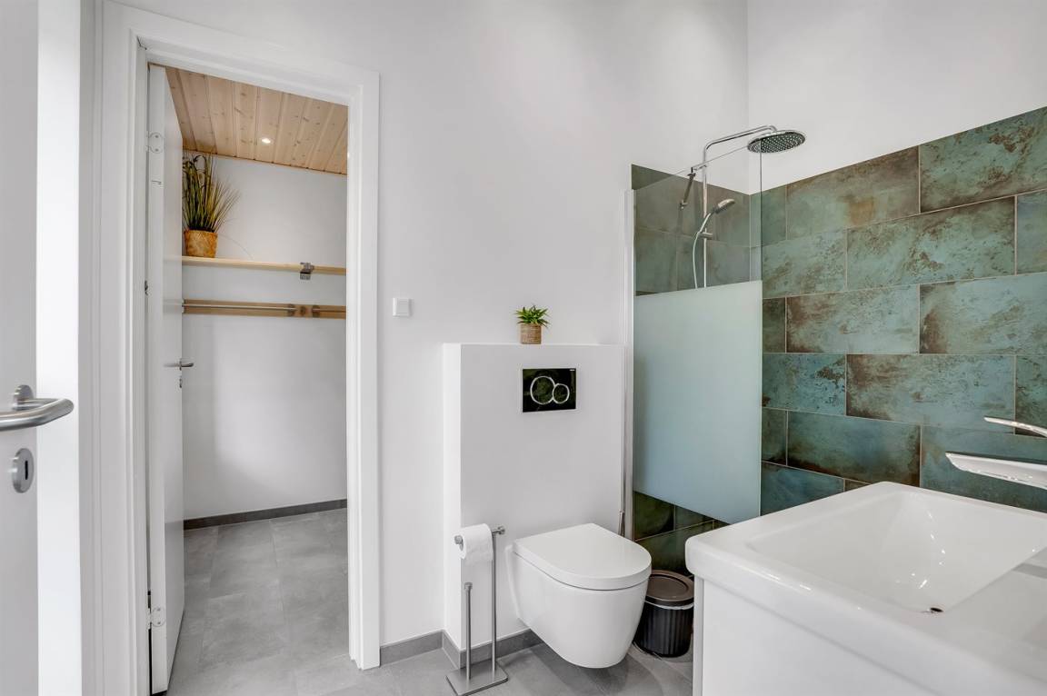 Zwei moderne Badezimmer, eines davon mit praktischem Hauswirtschaftsraum inklusive Waschmaschine und Trockner, sorgen für Komfort und Funktionalität für die ganze Familie.