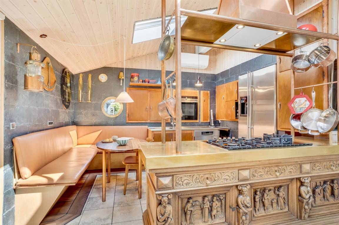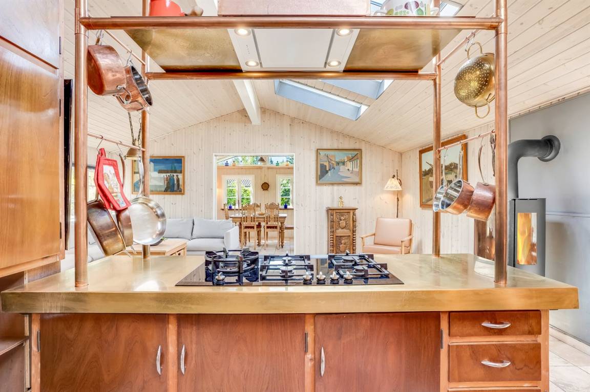 Draußen warten zwei herrliche Terrassen: eine Frühstücksterrasse und eine Nachmittags¬terrasse, jeweils mit Sonnen- oder Schattenplätzen. Teile der Terrassen sind überdacht, zusätzlich gibt es eine Markise für laue Sommerabende. Ein Holzkohlegrill sowie ein Außenkamin stehen ebenfalls bereit.